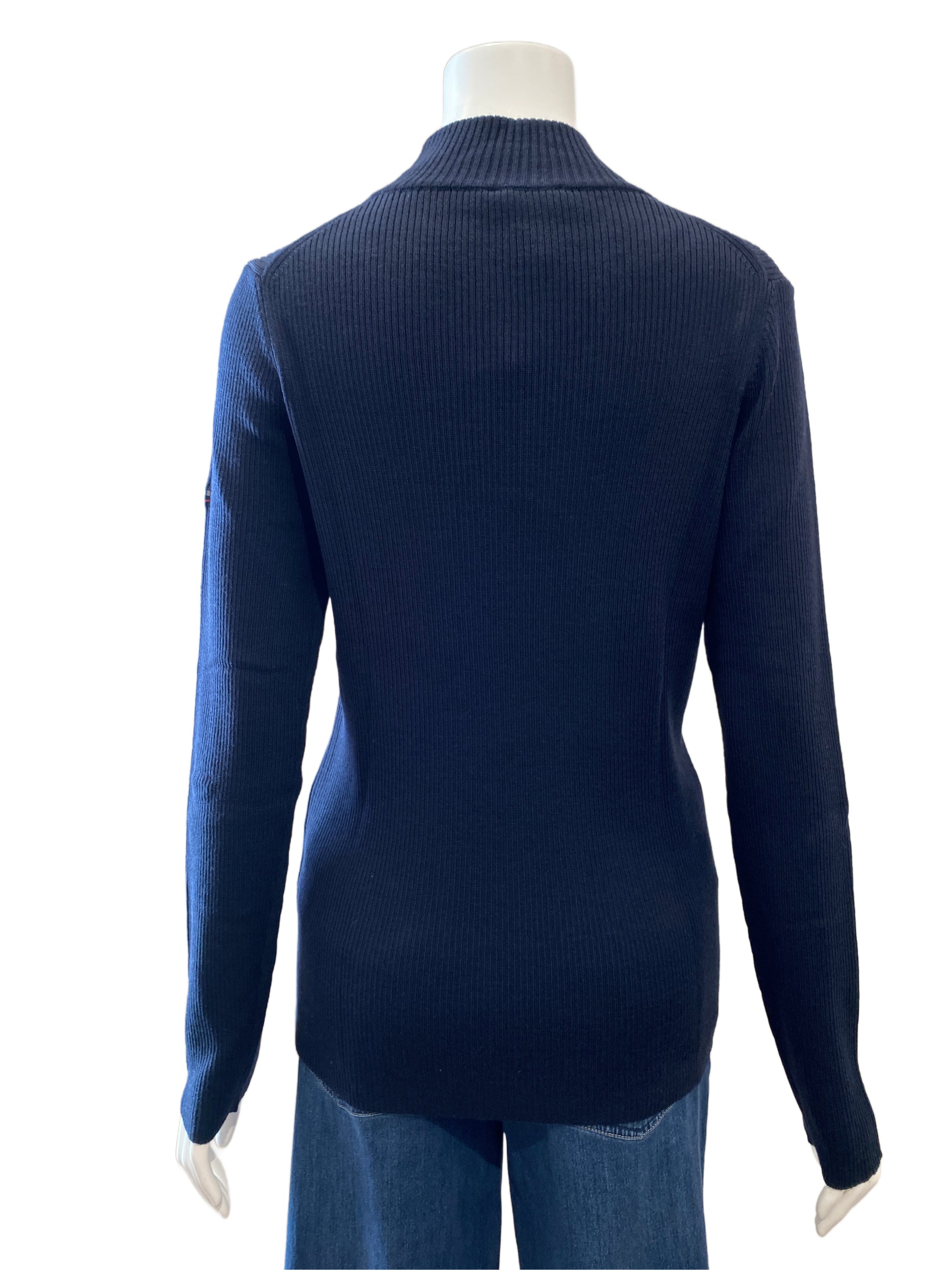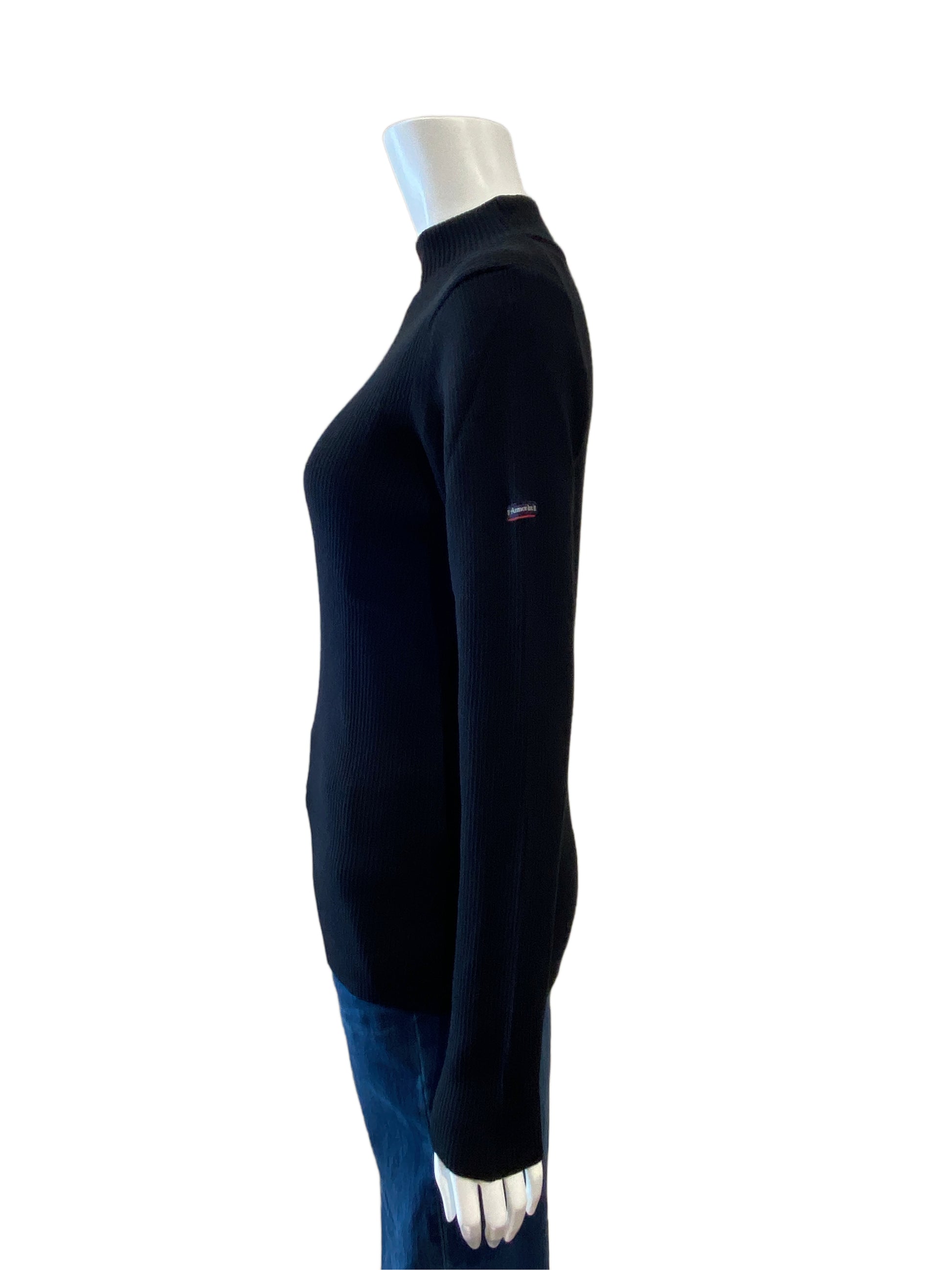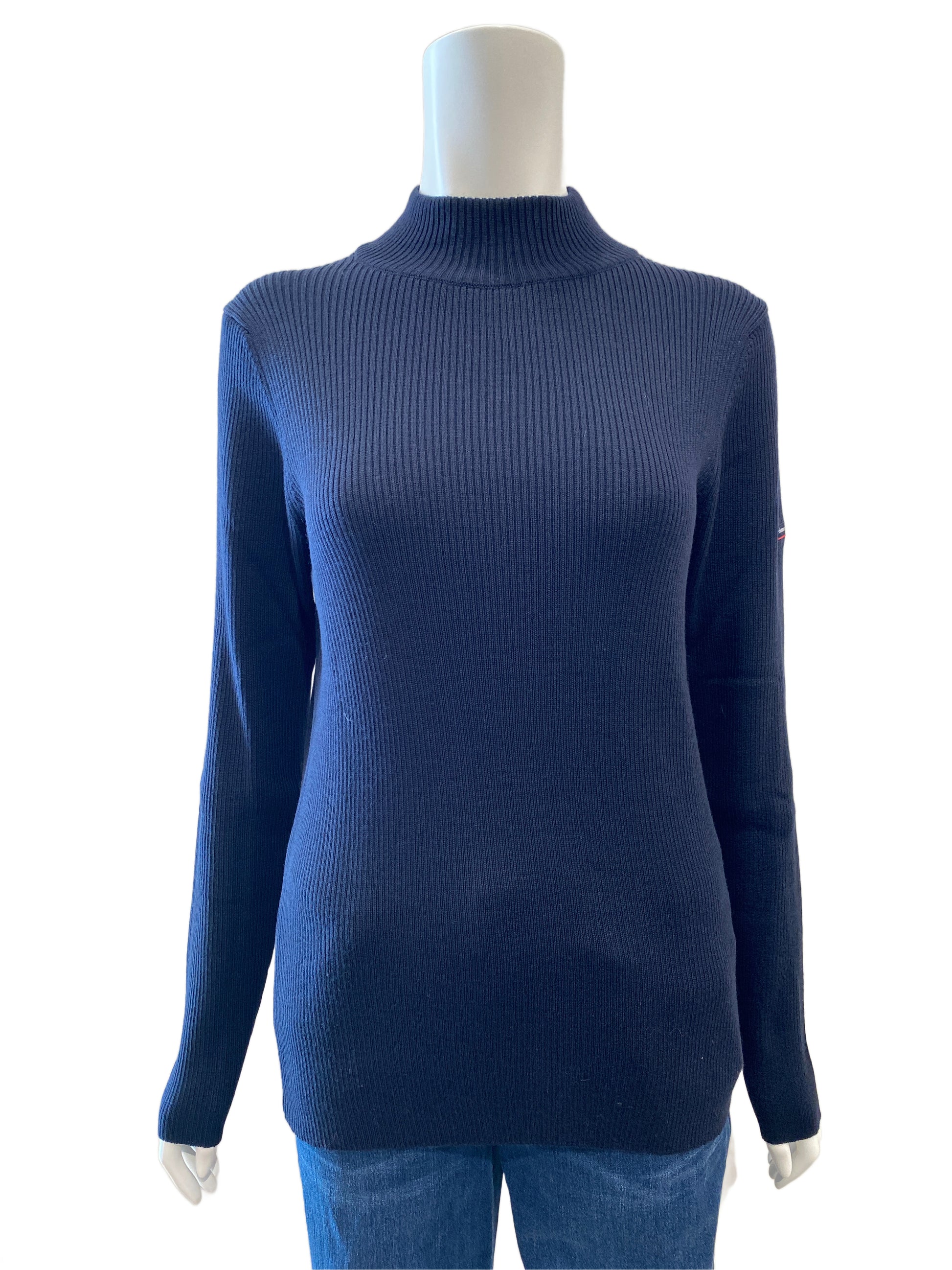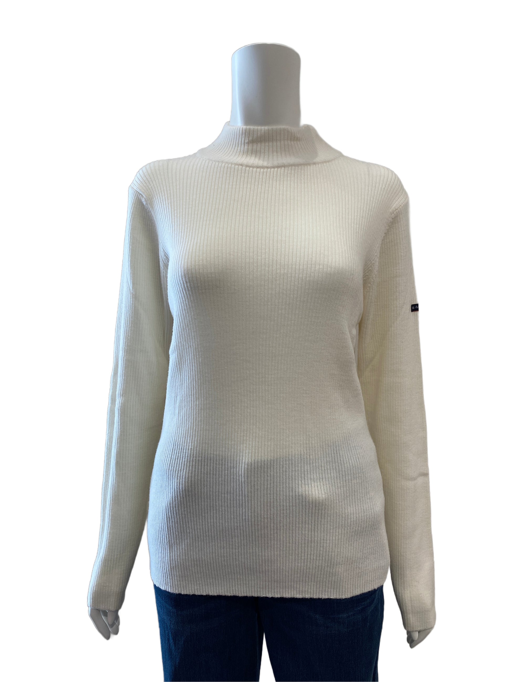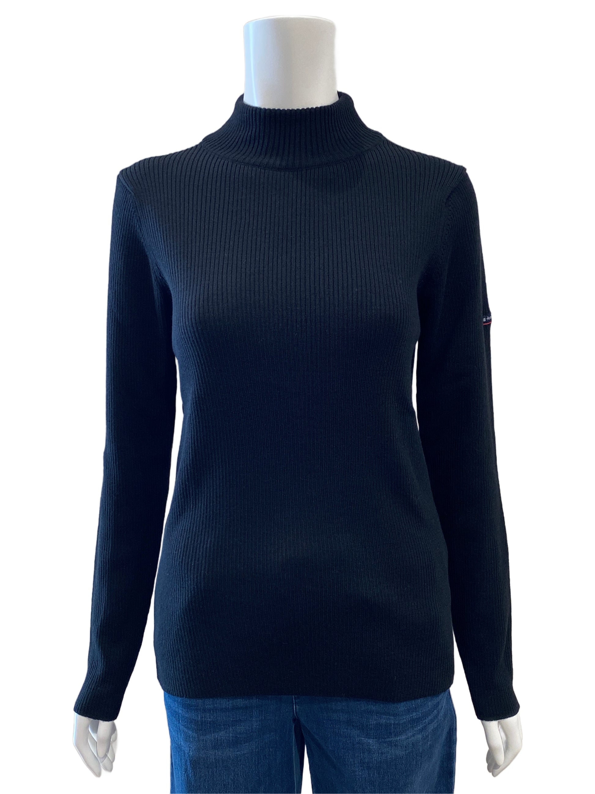 シンプルなリブニット。ネックの高さも少しあるので暖かいです。ジャケットのインナーにもオススメです。