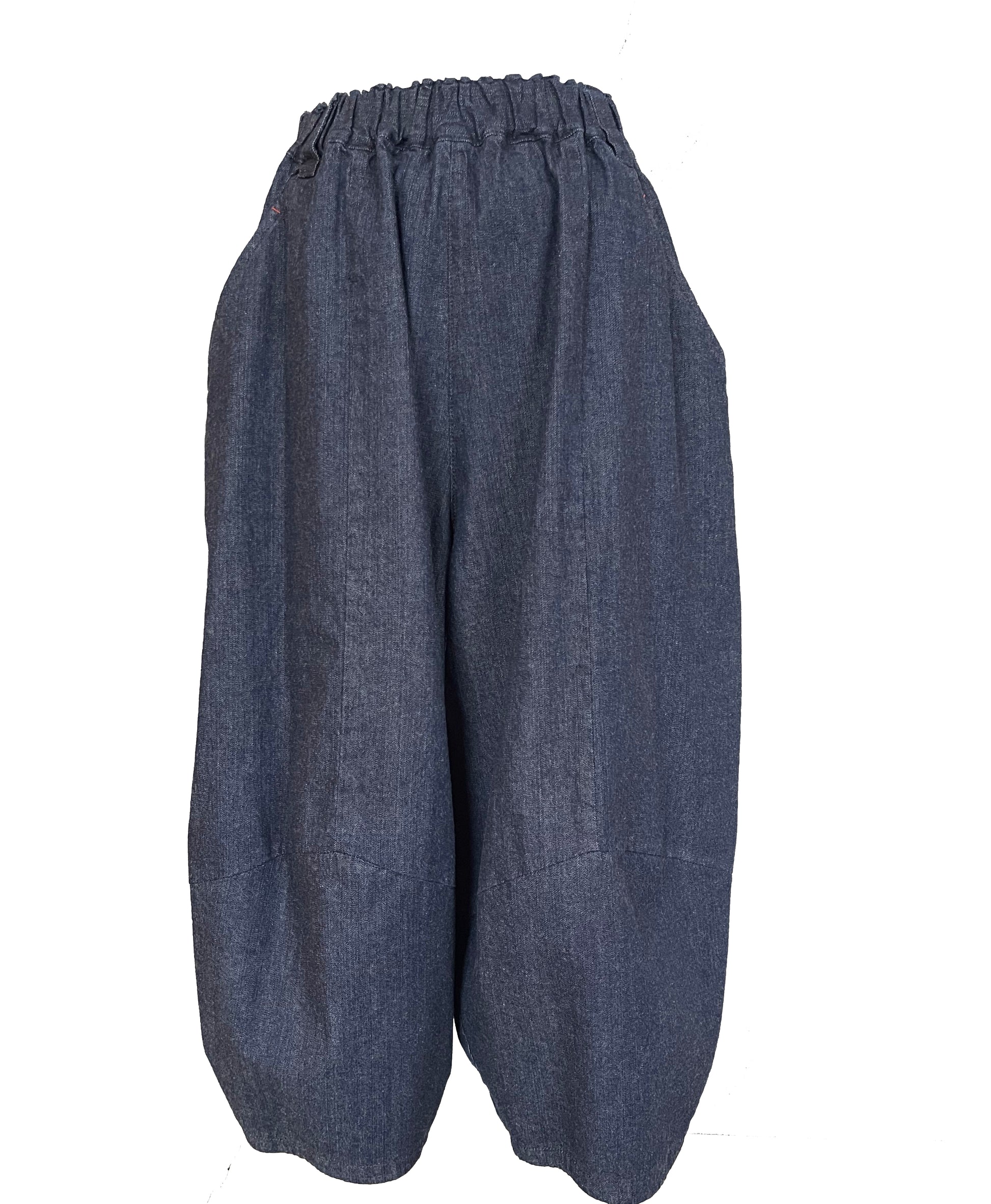 計算された丸みシルエットで、はくだけでこなれ感が出る変形デニムボリュームパンツ。ウエストは総ゴムでストレスフリーな履き心地。体型カバーも叶えつつ、デニムならではの軽快さで、季節問わず大活躍。トップスを選ばない万能パンツです。