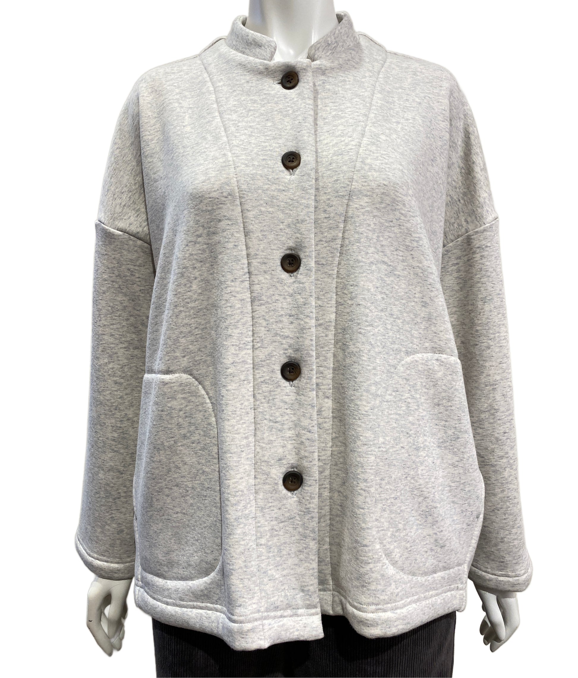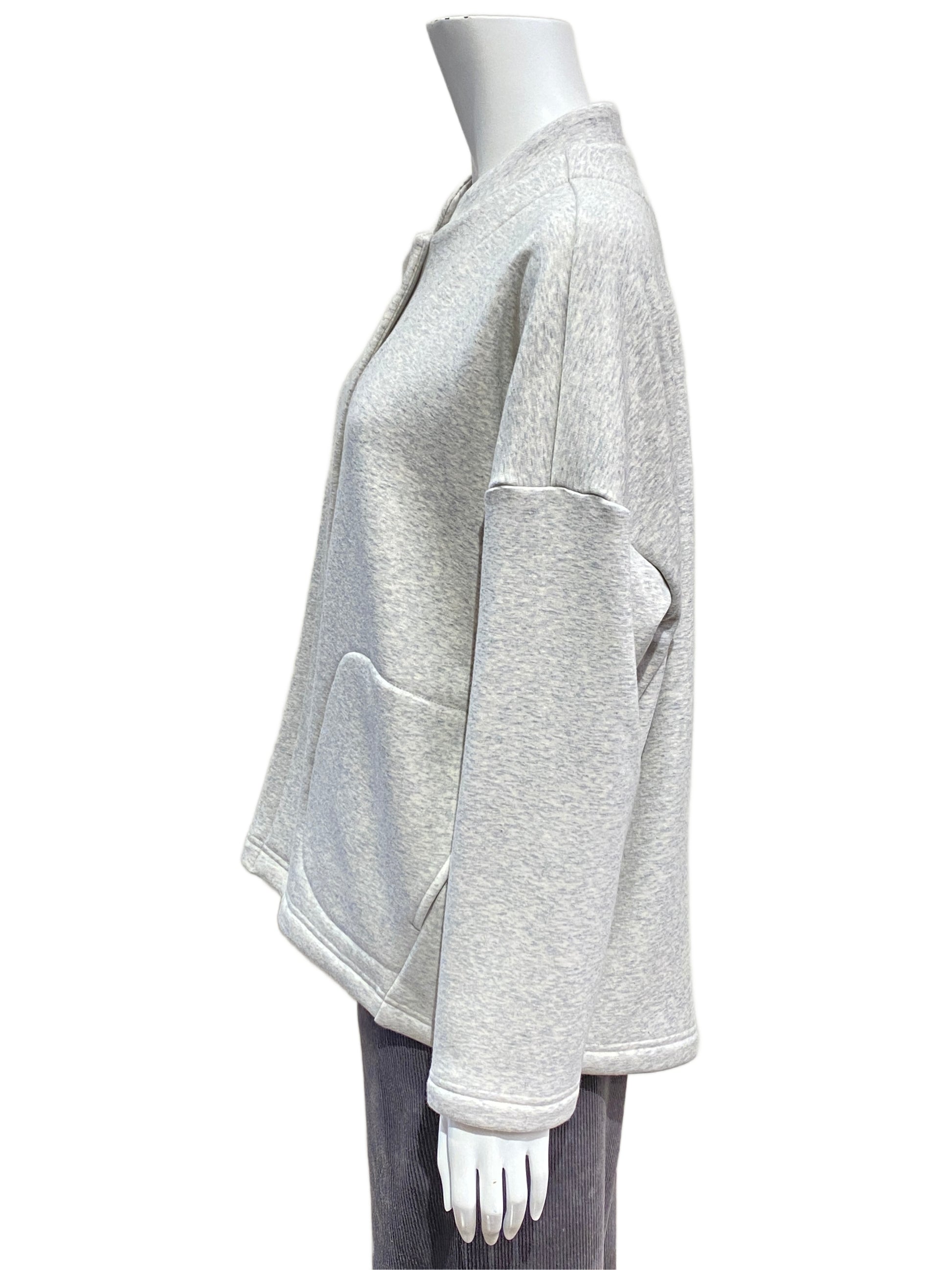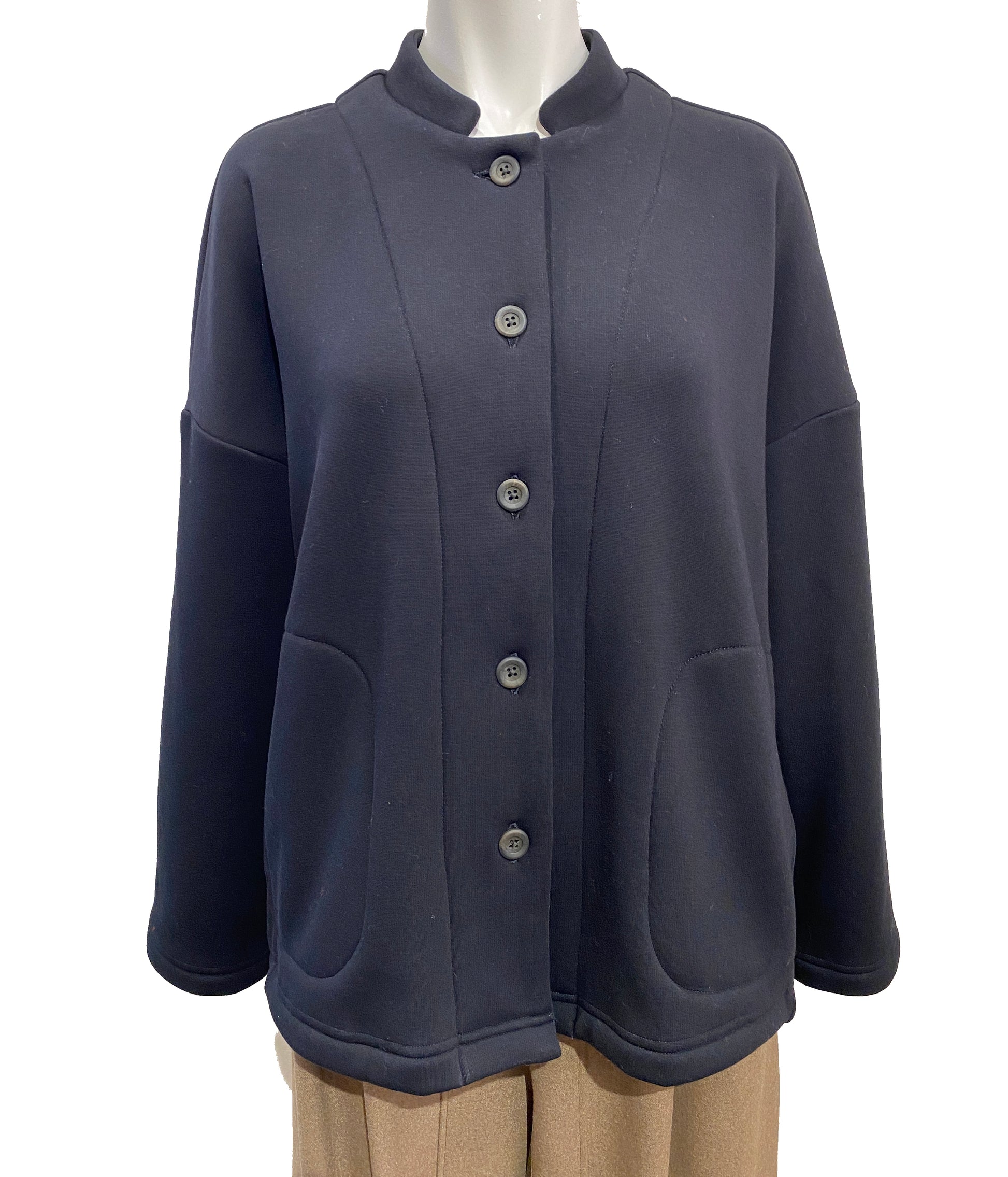 ジャケット風のカーディガン。柔らかで滑らかな表地と裏は肌触りの良いシャギーで着心地も良く暖かい。後ろのステッチで立体的なシルエットが可愛いカーディガンです。