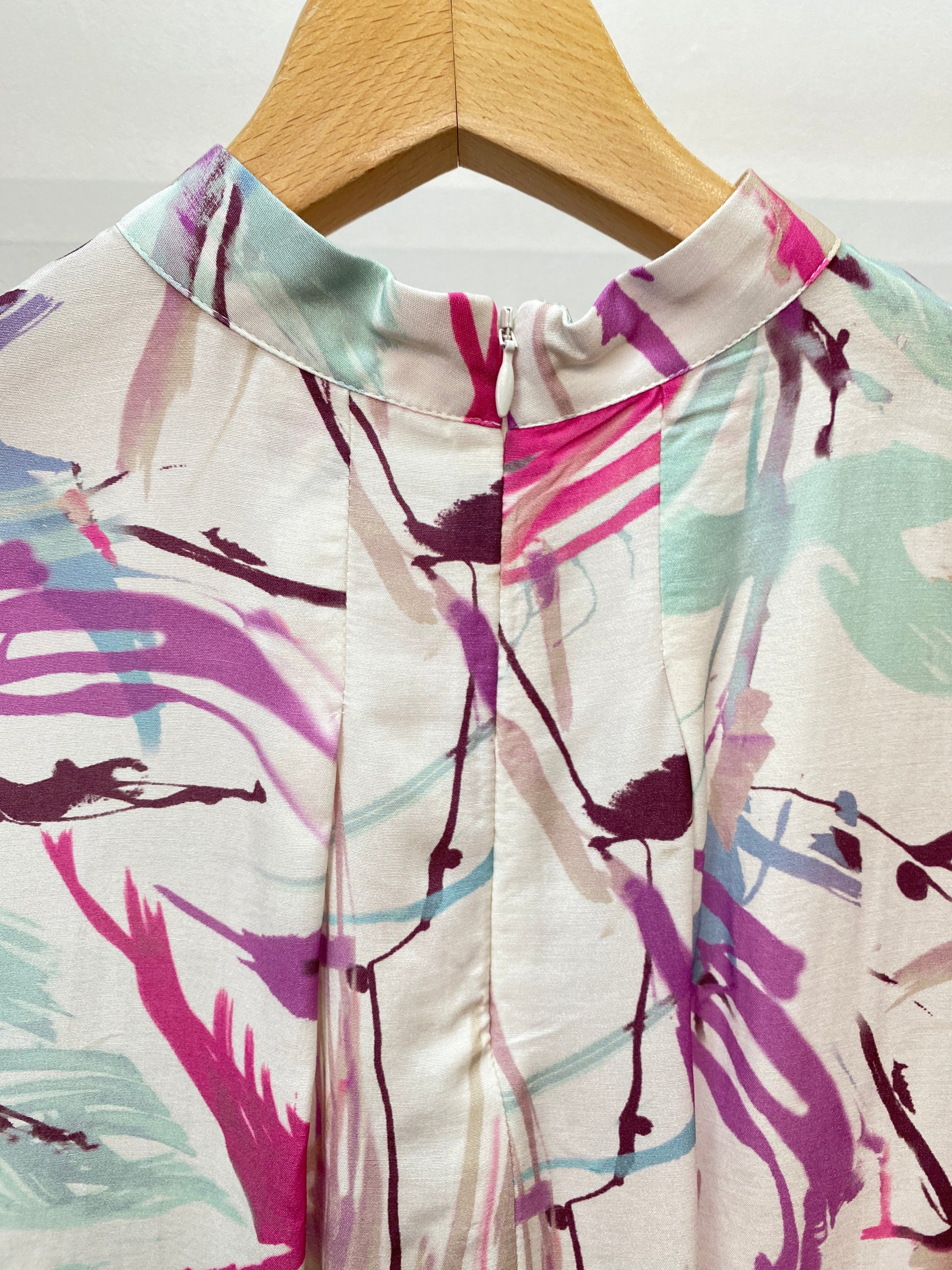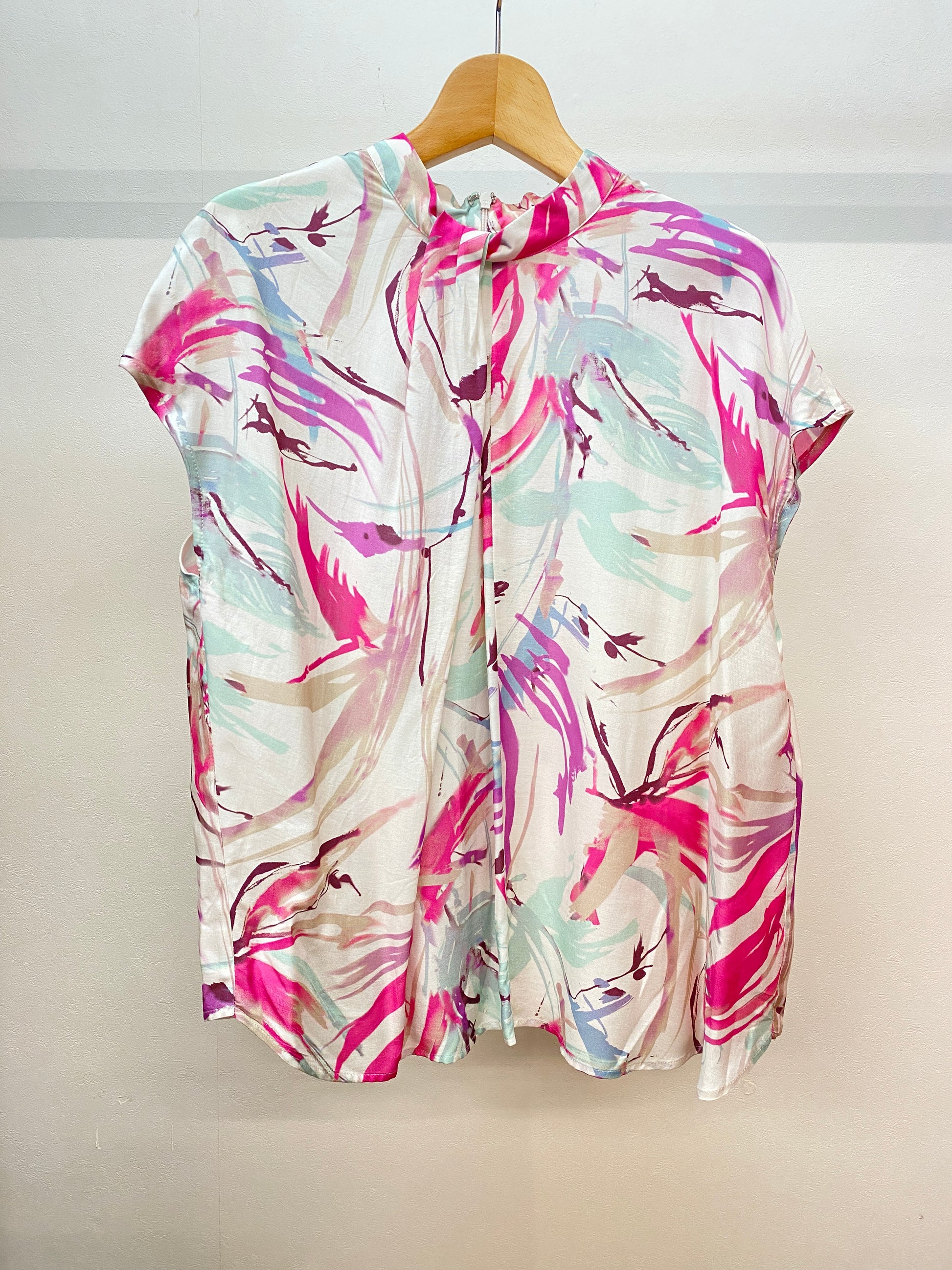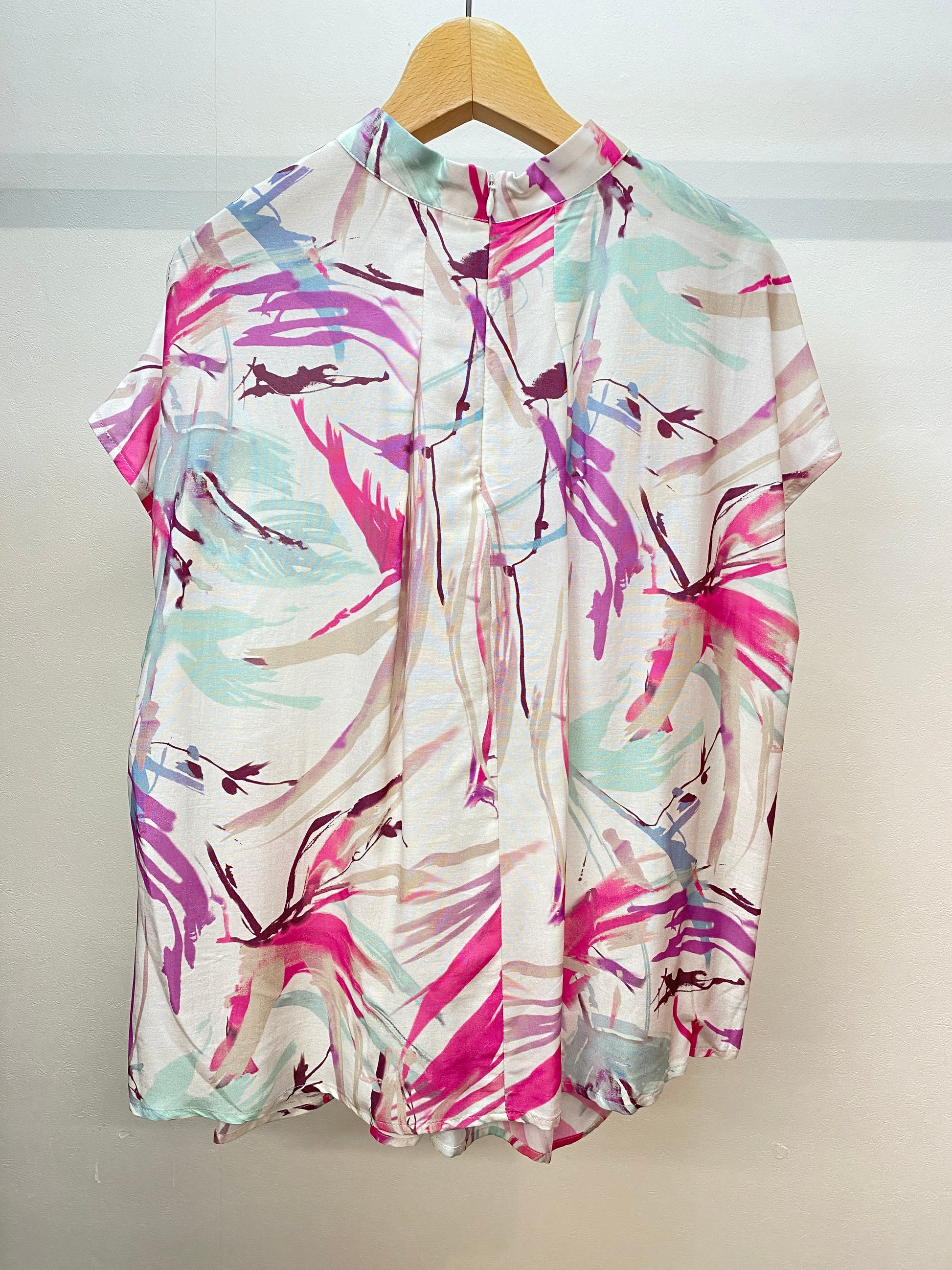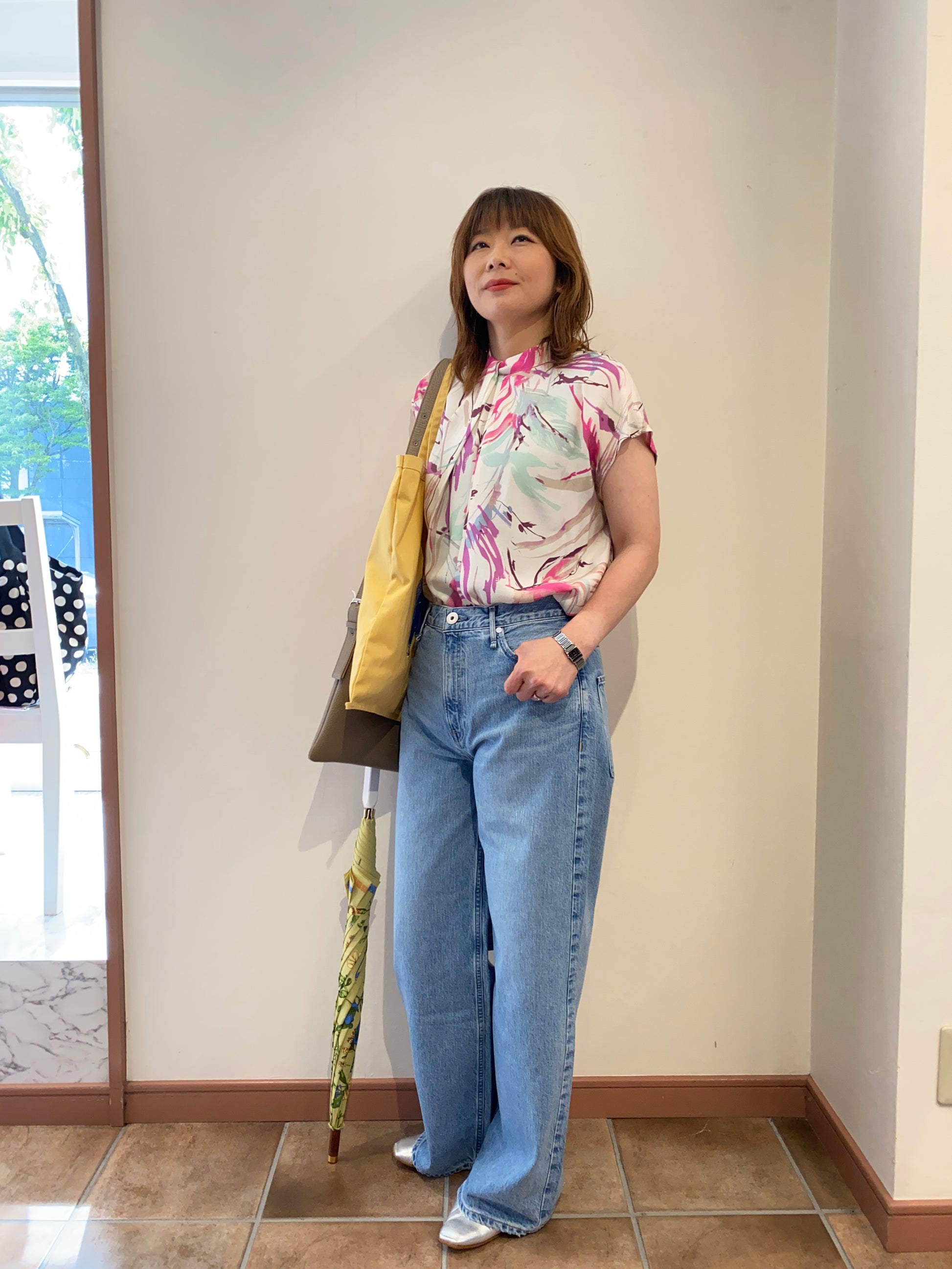大胆な柄が華やかなプリントブラウス。デニムでカジュアルも、ジャケットのインナーとしてキレイめコーデにも、幅広く着回せます。
