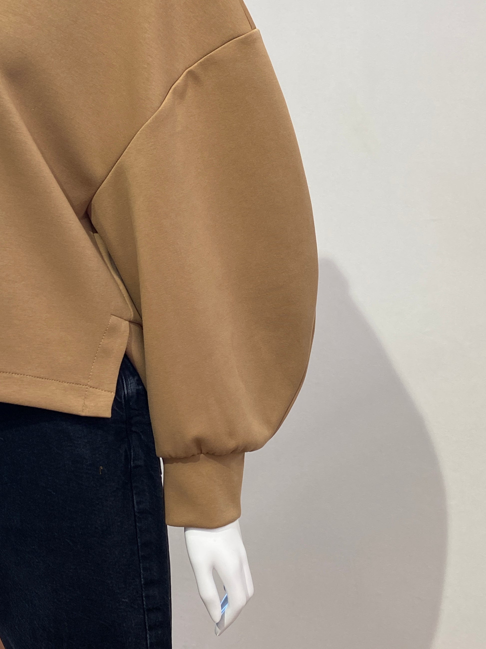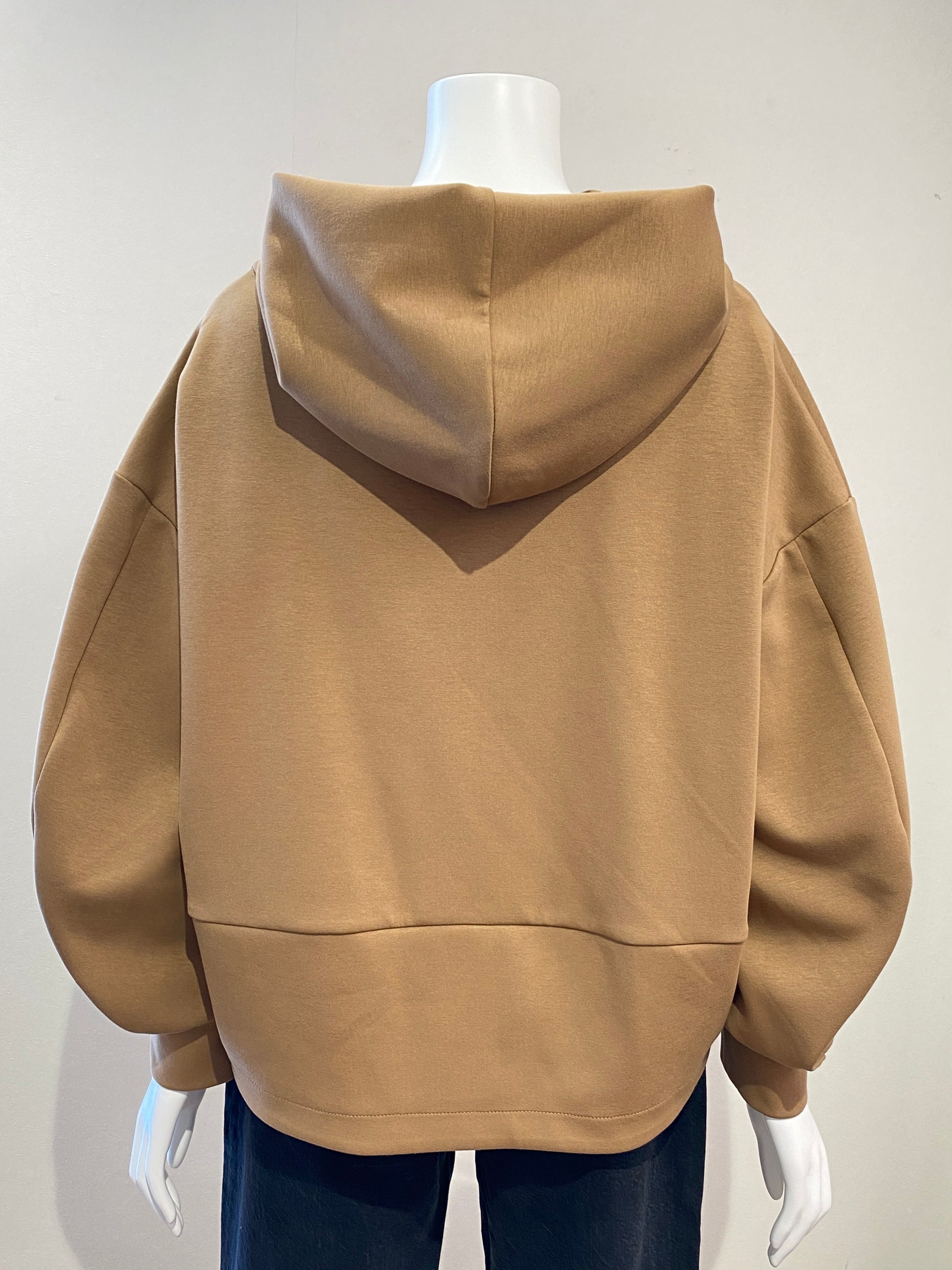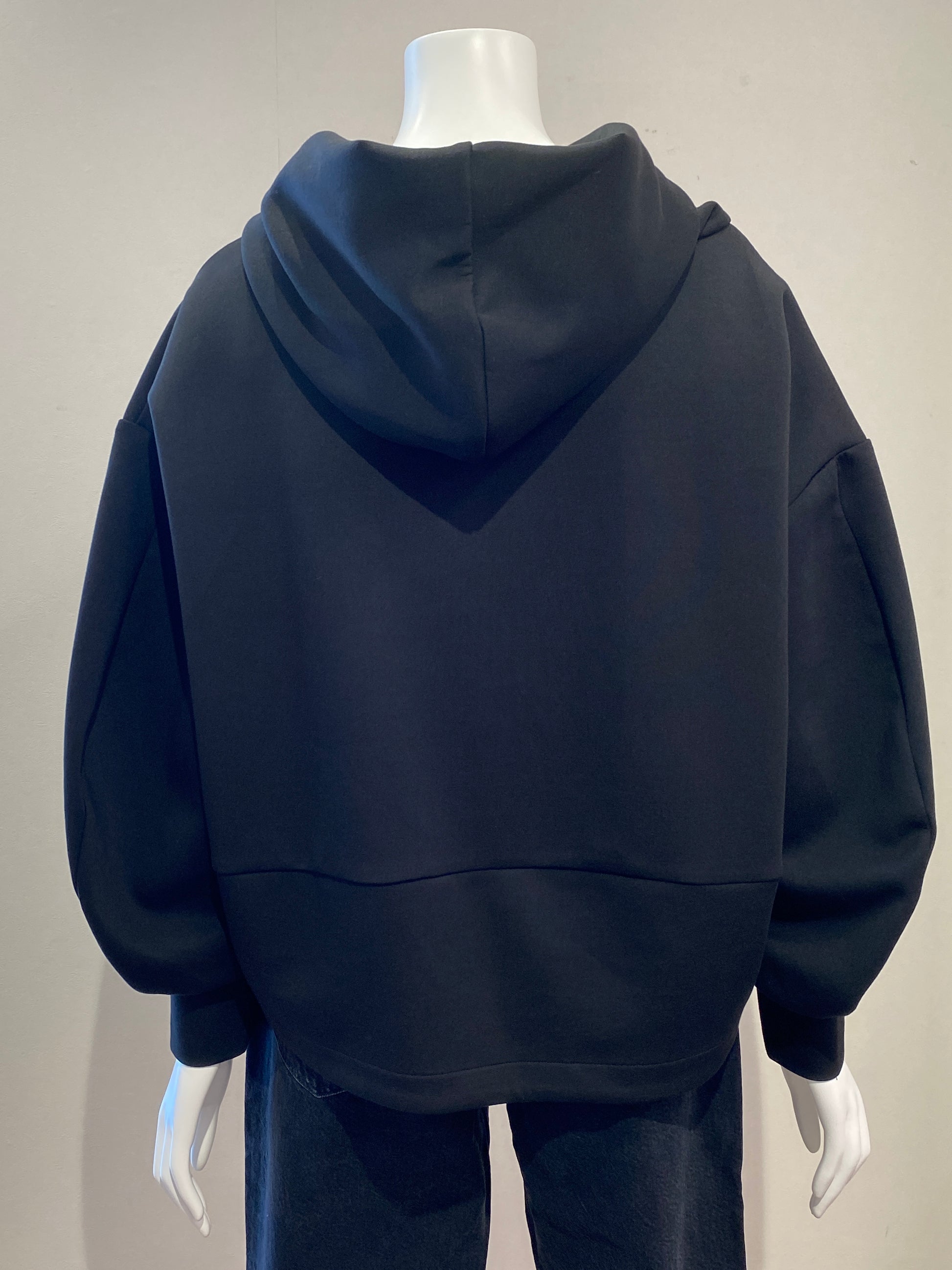 トレンドのクロップド丈のパーカー。ボンディング素材なので、軽い着心地。シンプルだけど、ボリューム袖が可愛いシルエット。