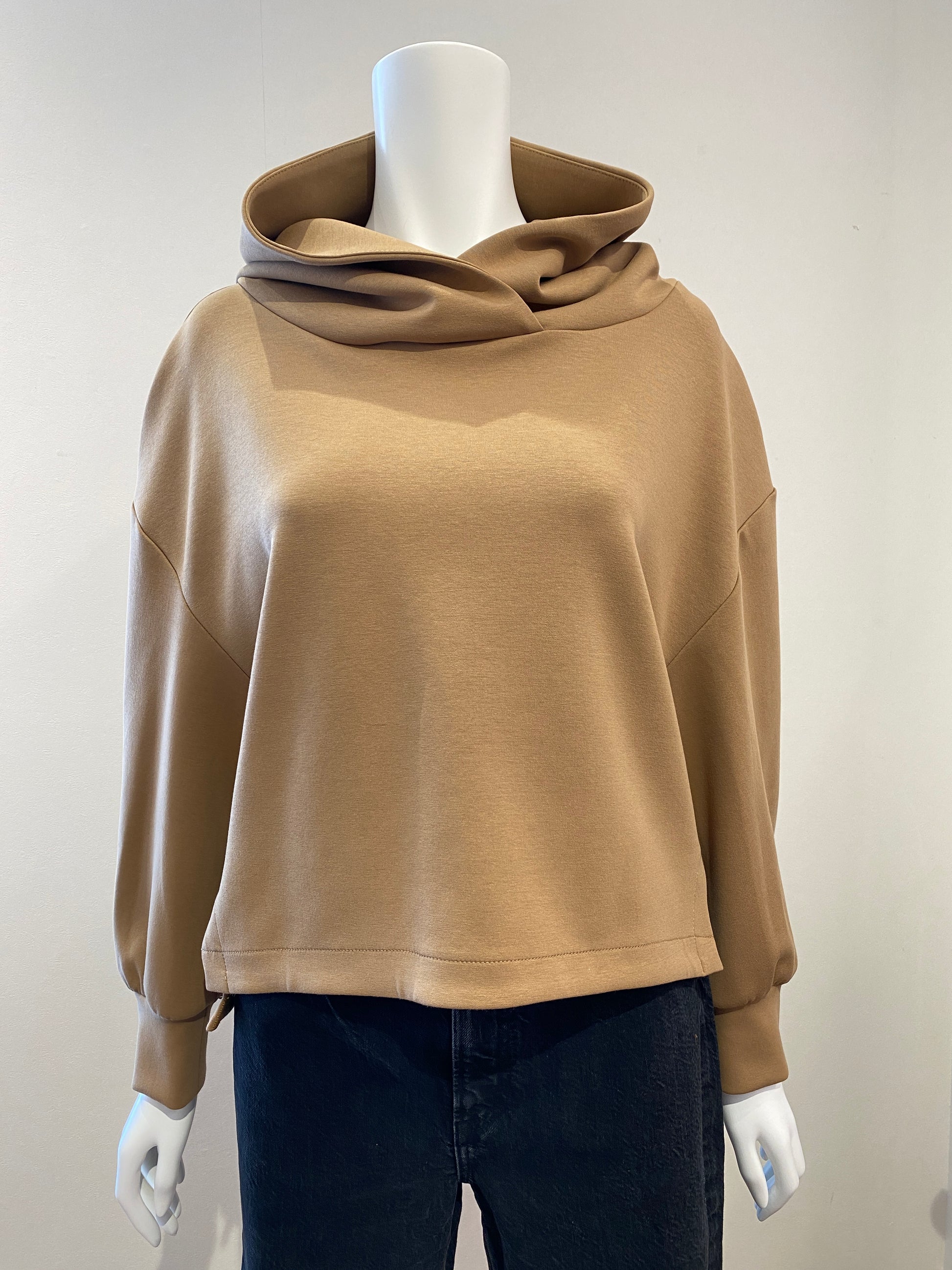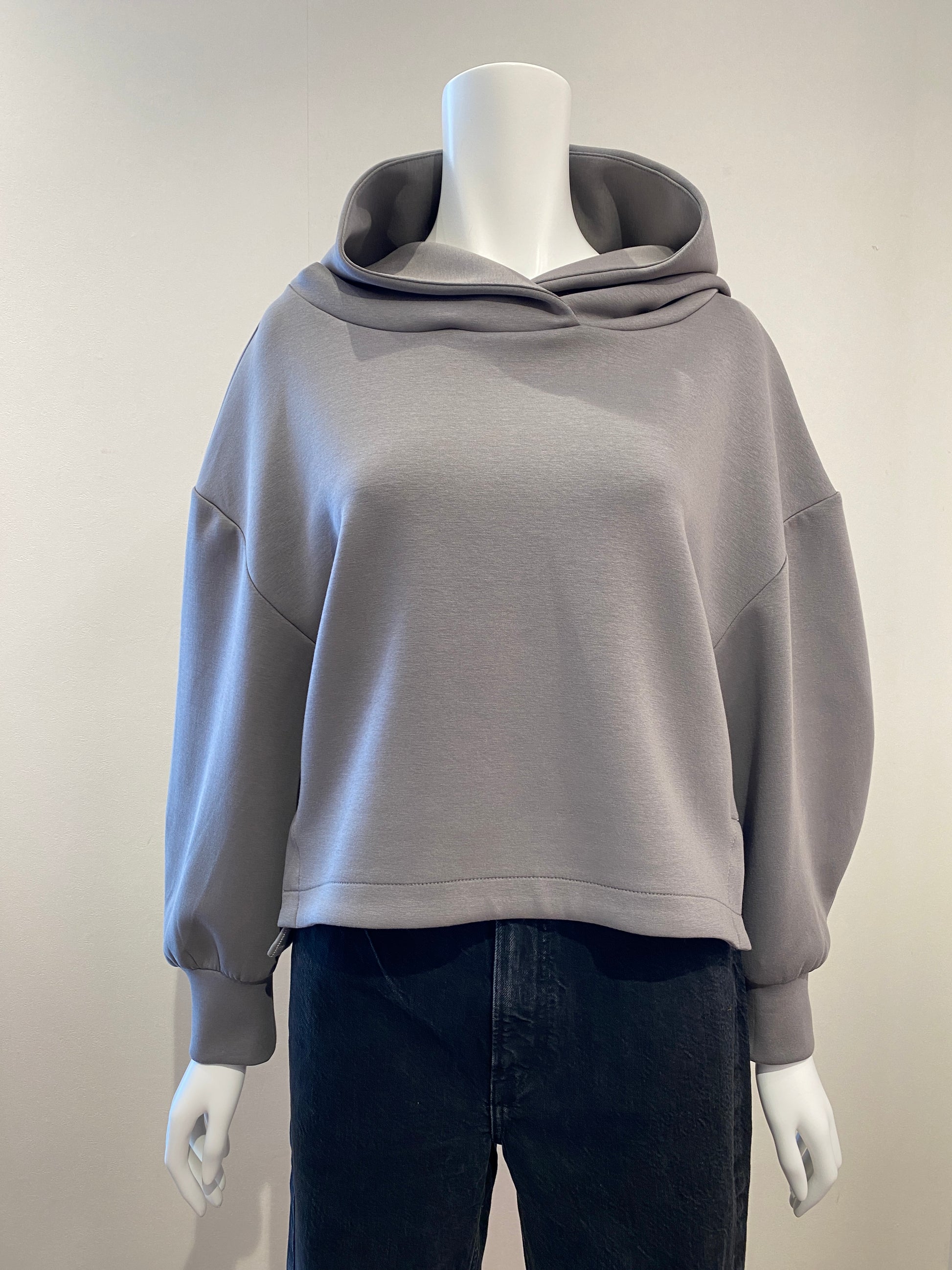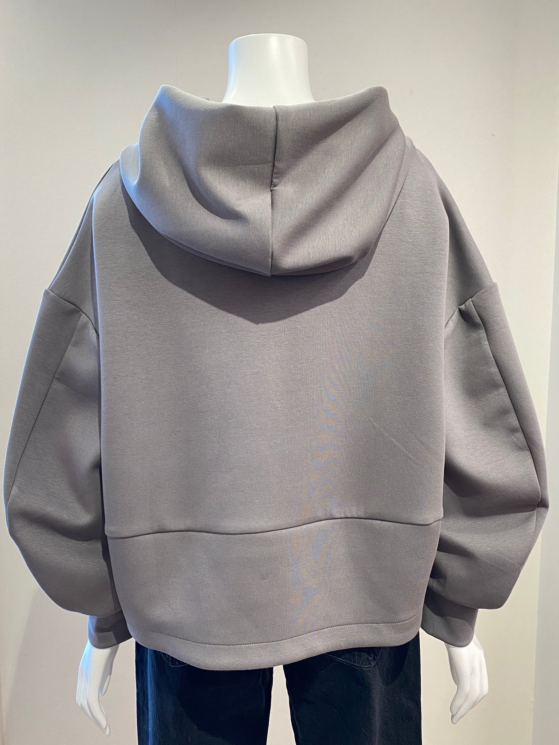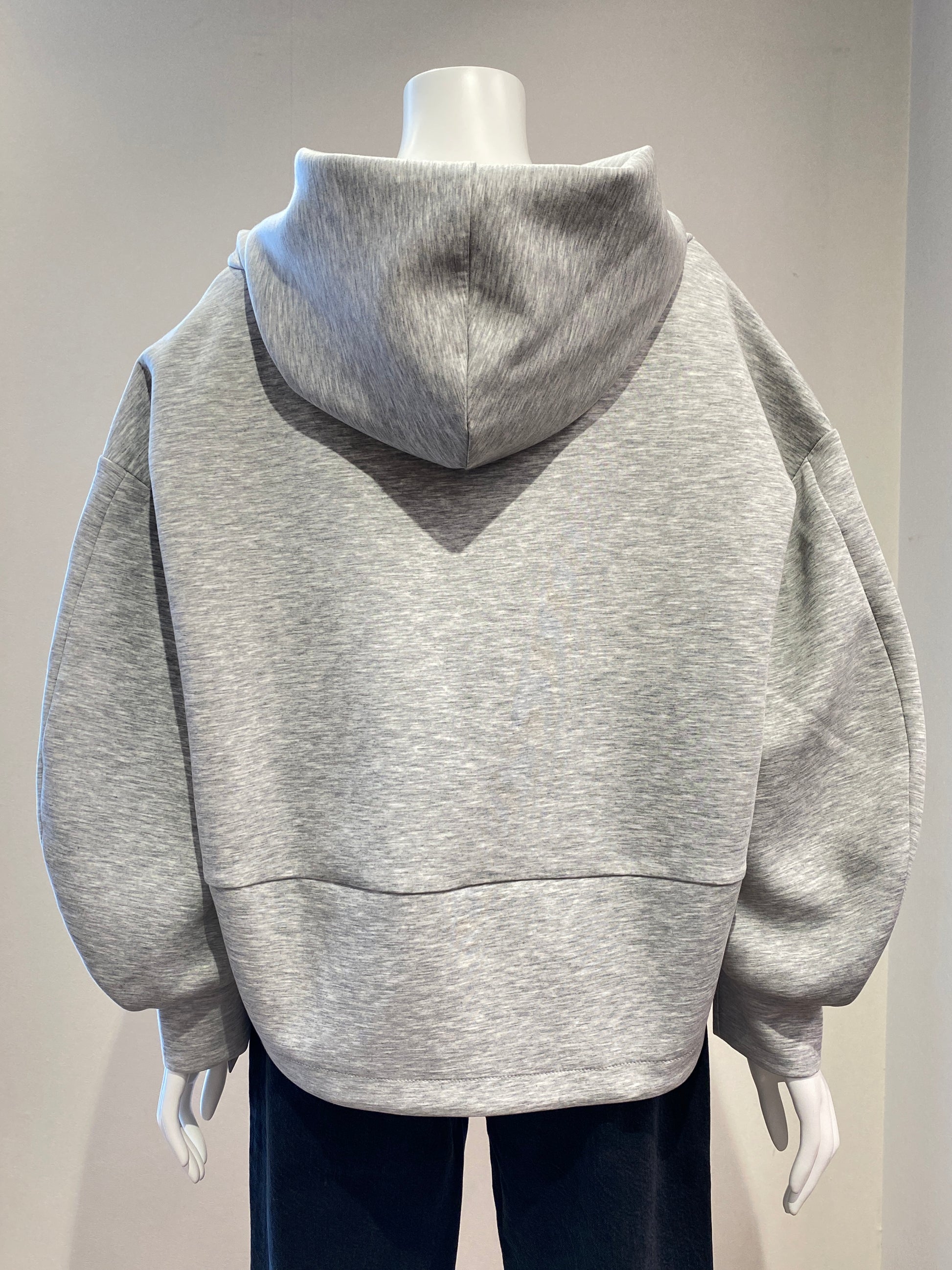 トレンドのクロップド丈のパーカー。ボンディング素材なので、軽い着心地。シンプルだけど、ボリューム袖が可愛いシルエット。