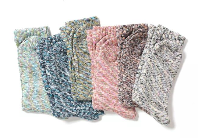 太さの異なるスラブ糸は、表面に自然な凹凸が生まれ 足をやさしく包みながら