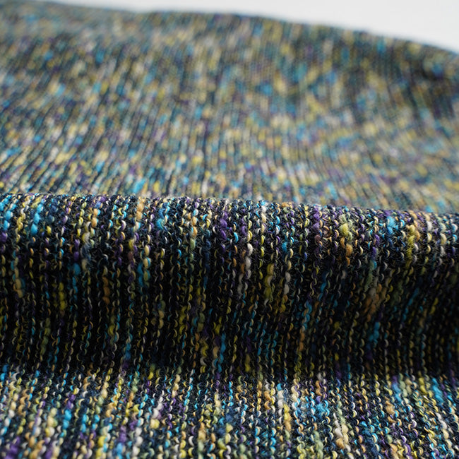 多色の糸を織り交ぜたコットン素材は、色と色が自然に溶け合い、ほのかに心くすぐるやさしい表情。