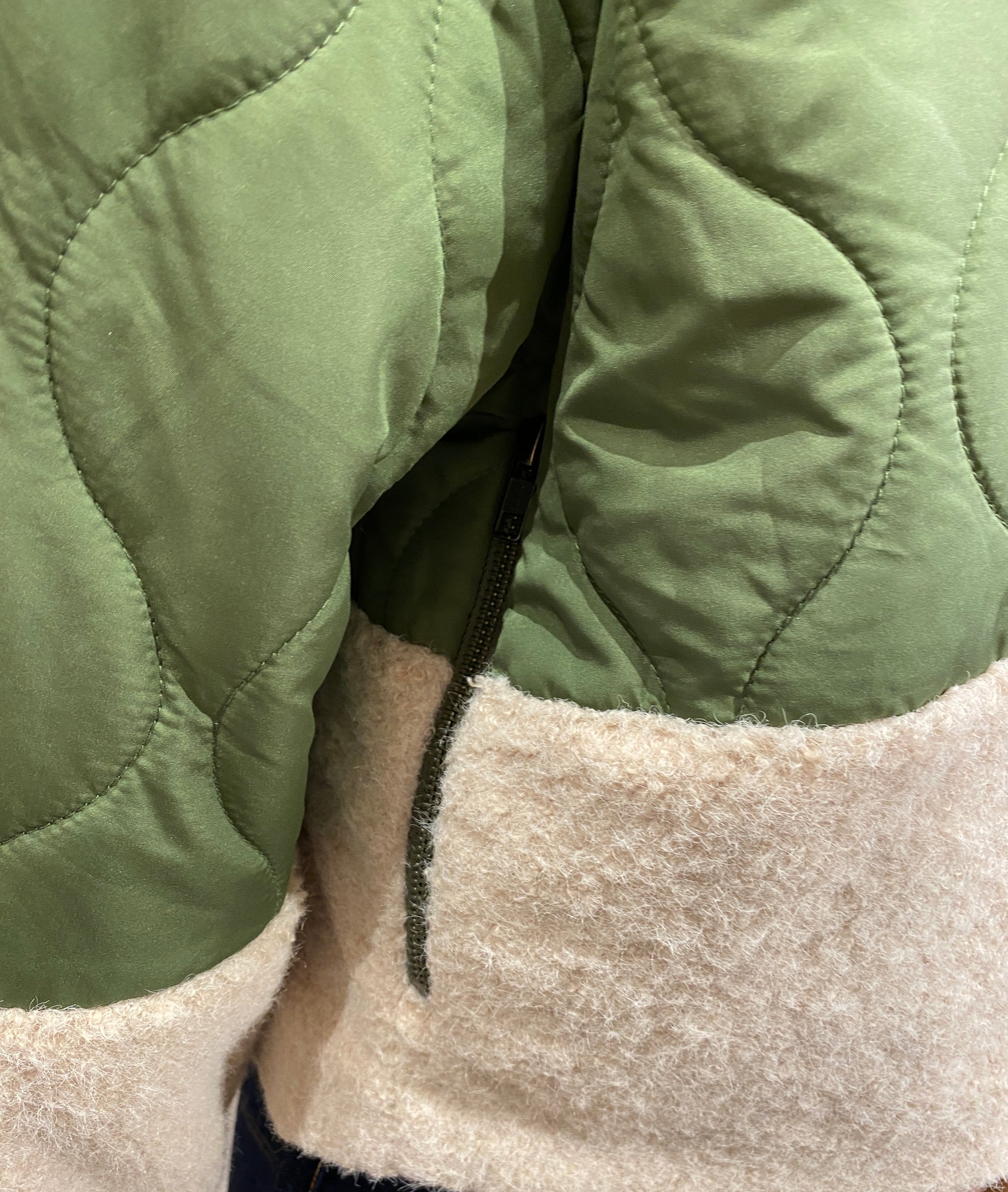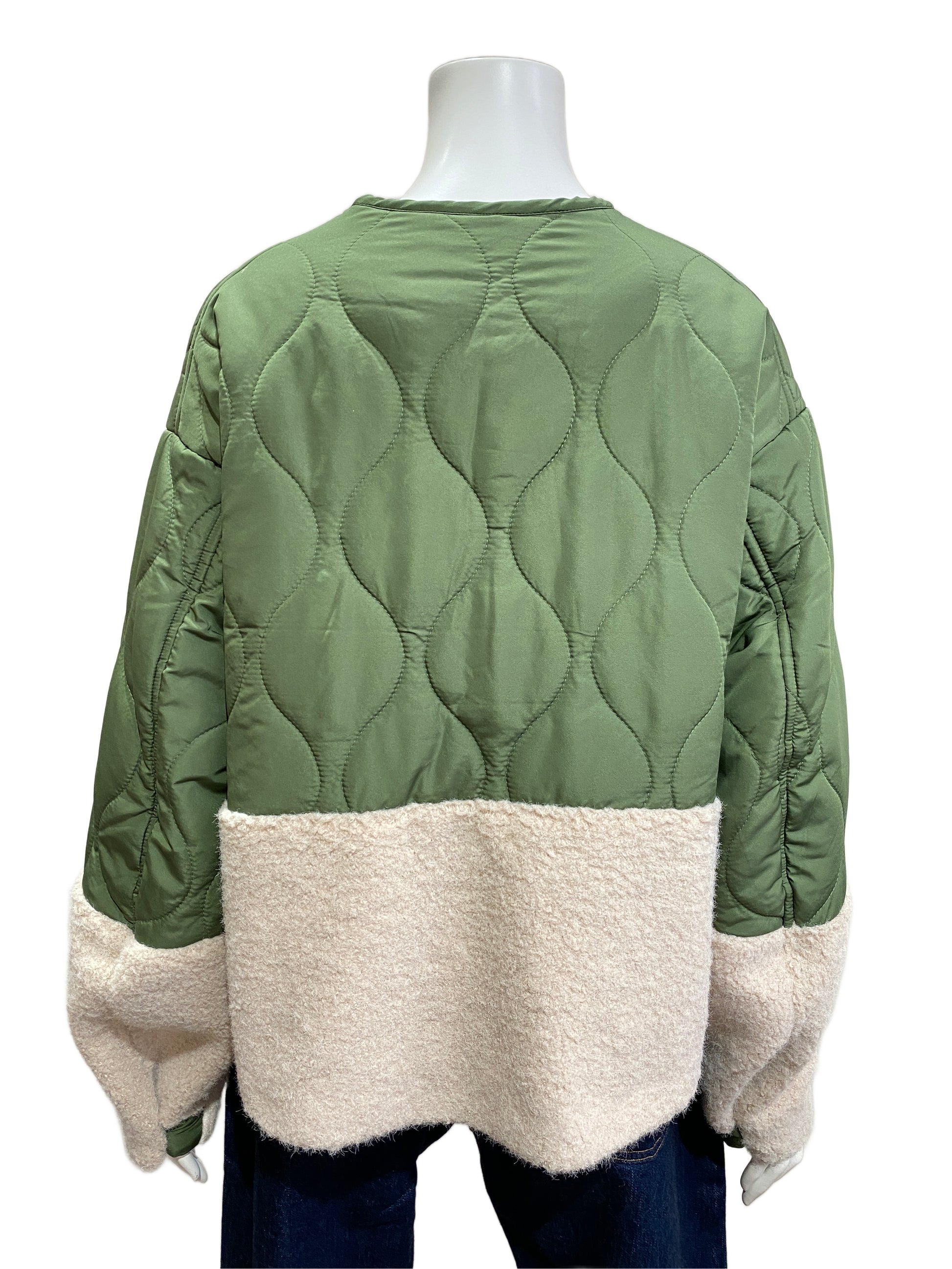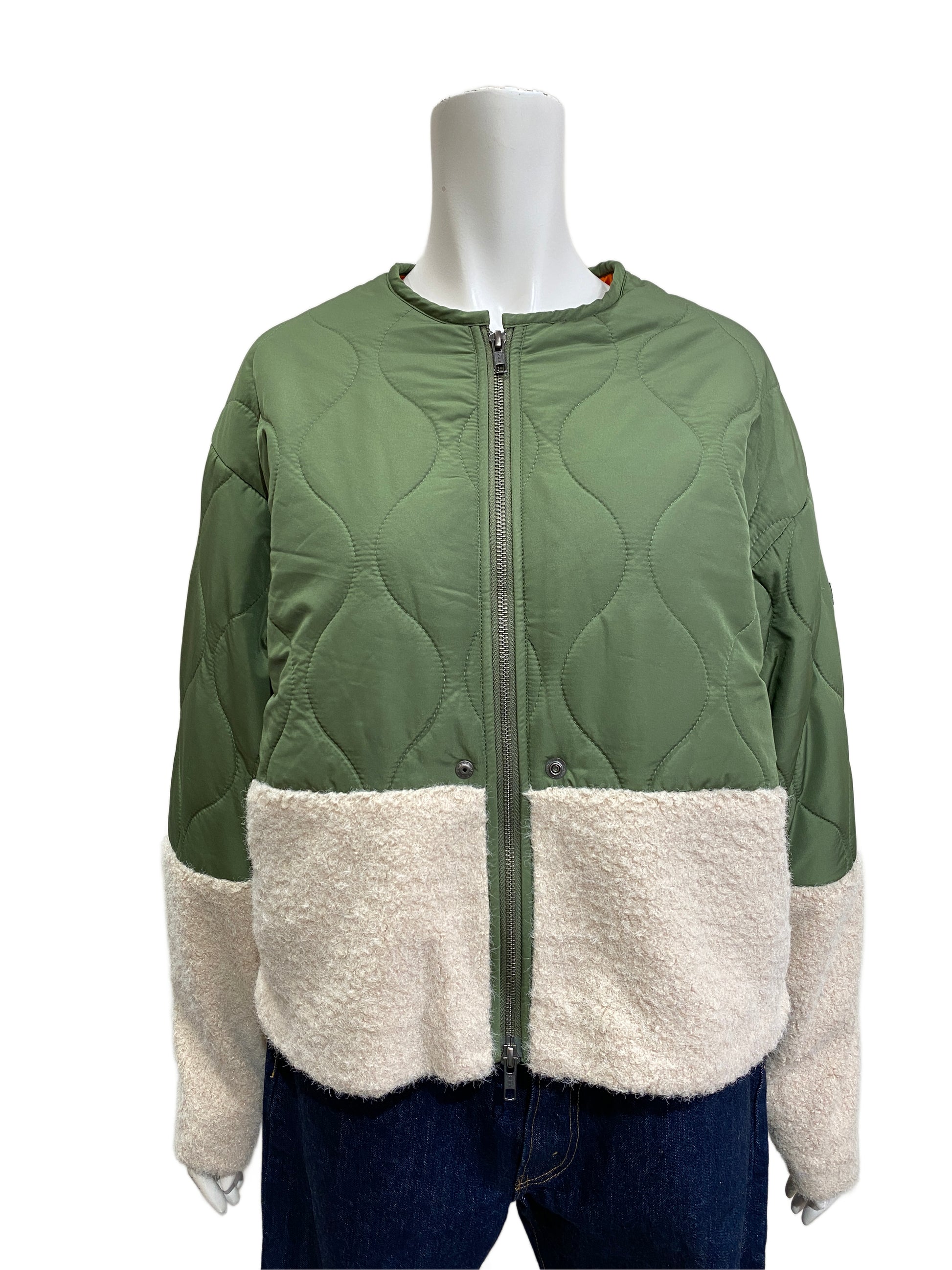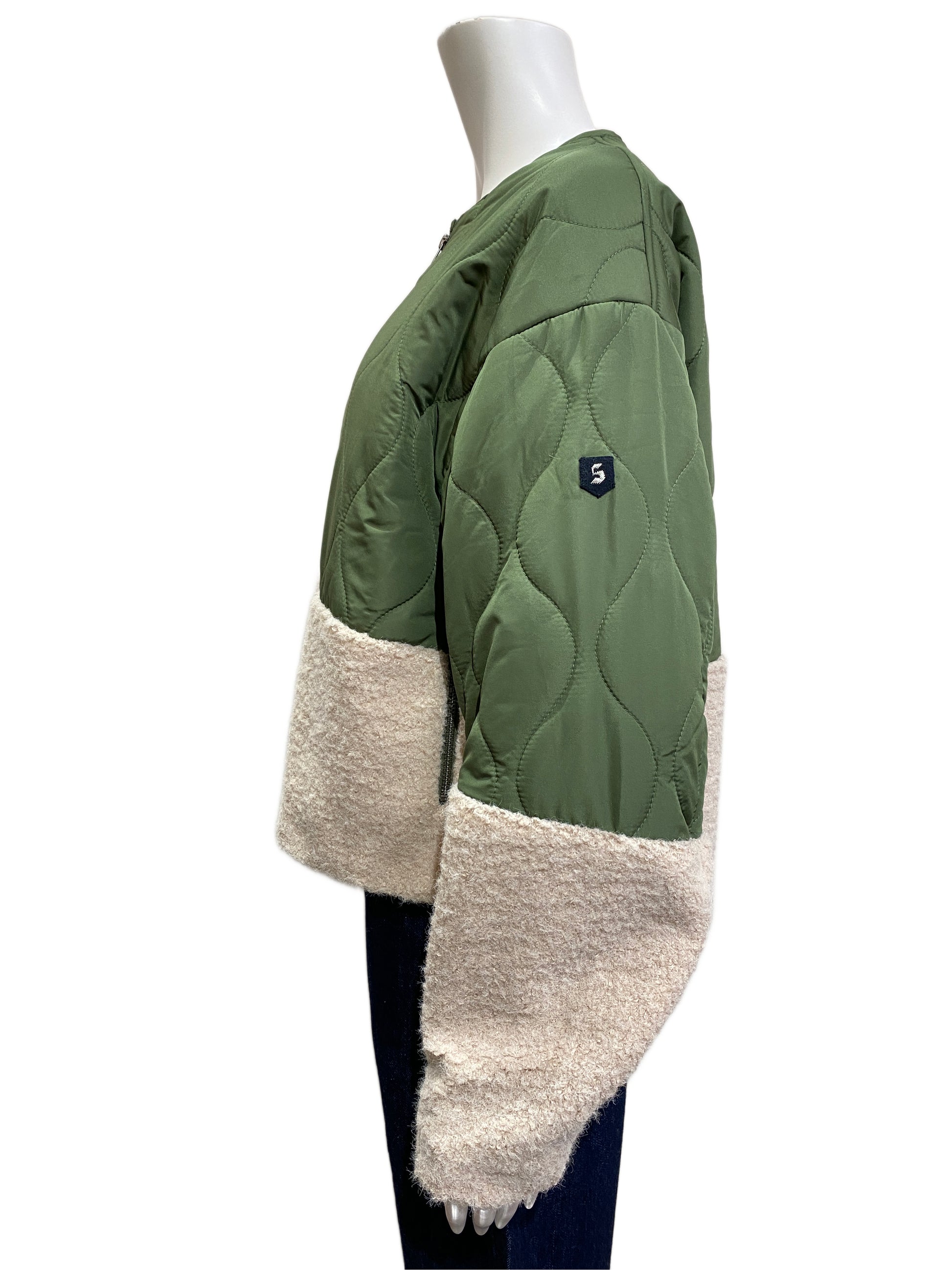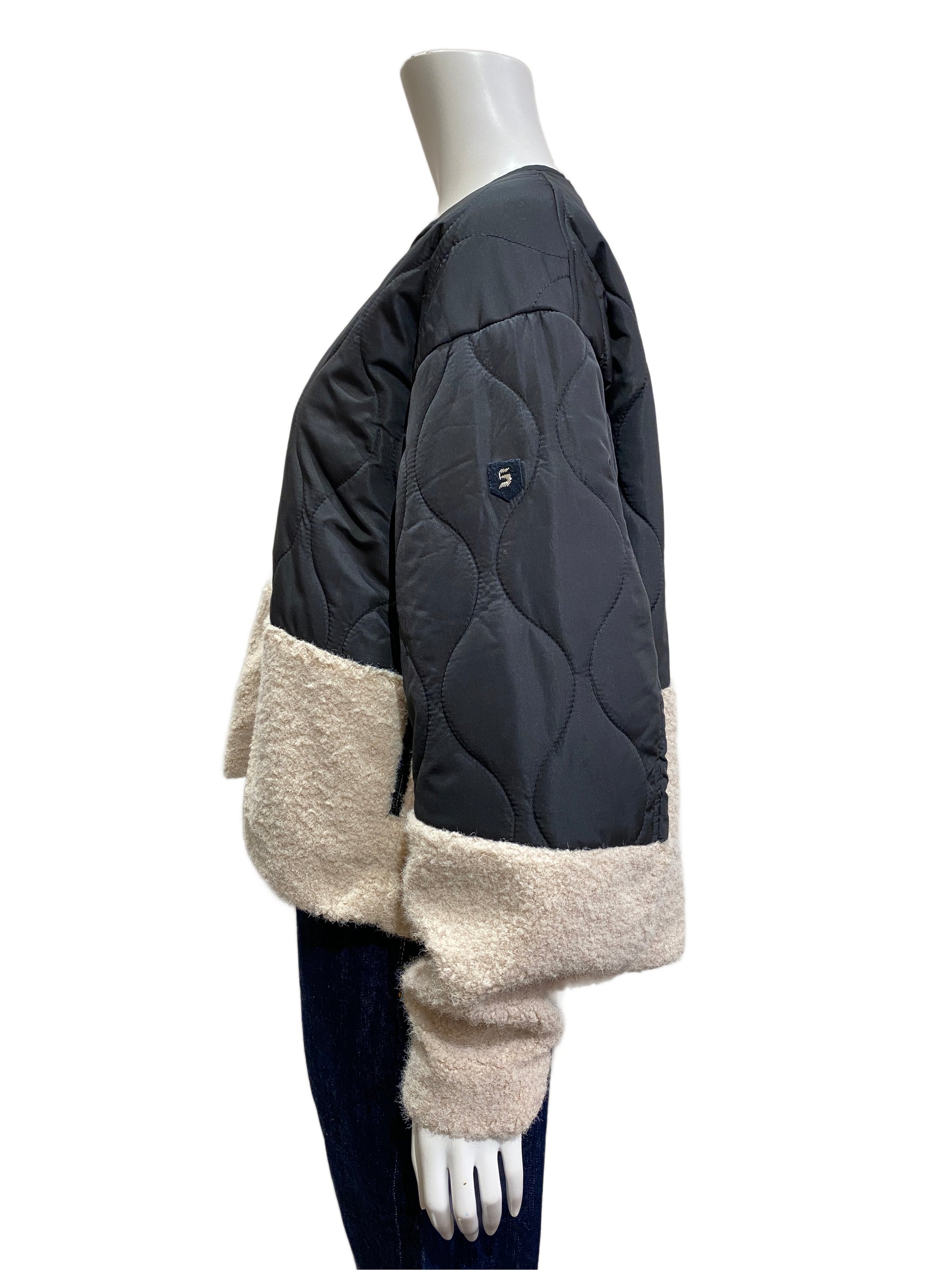 キルティングとボアのミックスのショートジャケット。肌触りのいいボアと軽い中綿のキルティングなので気軽に羽織っていただけます!