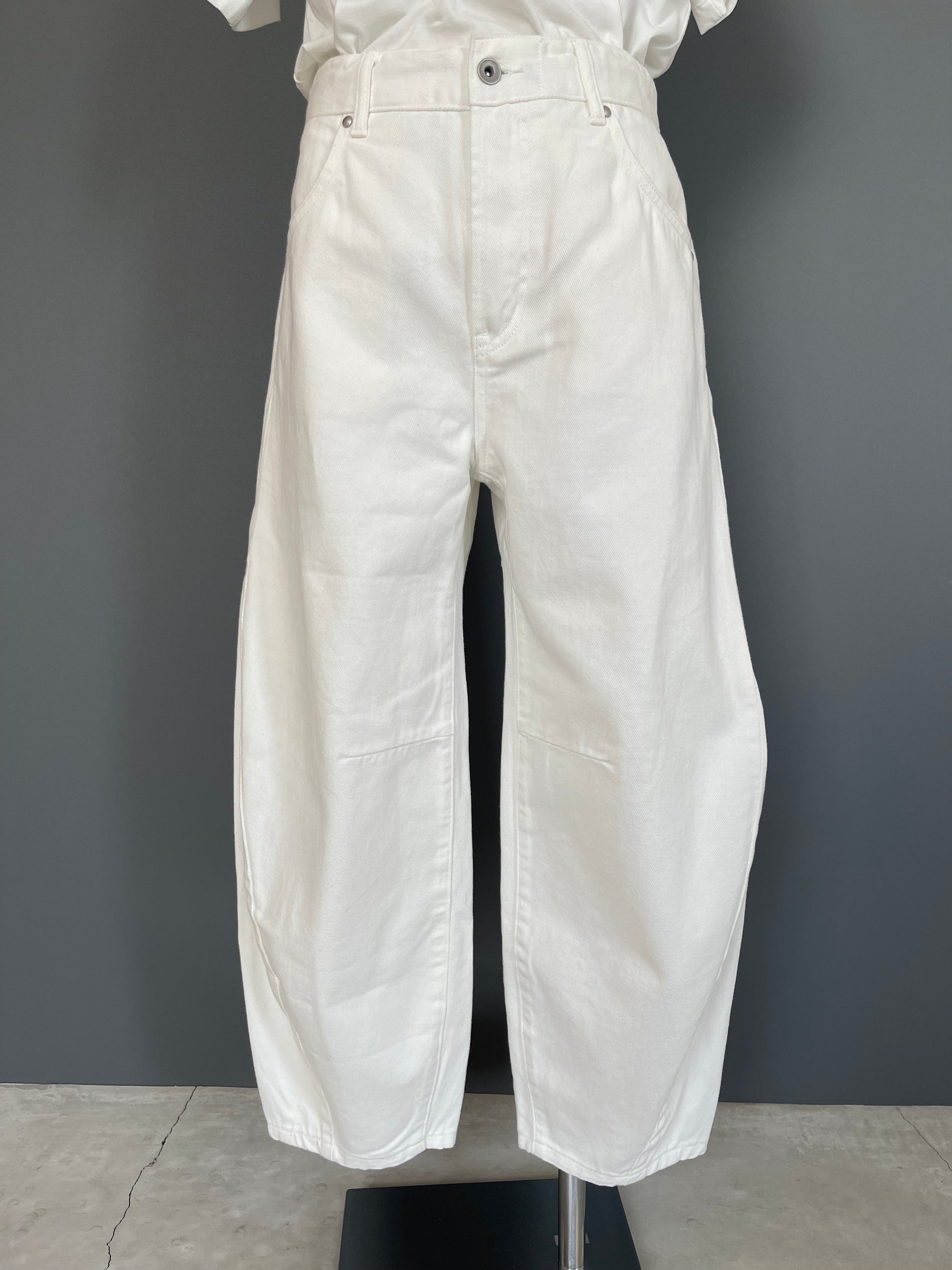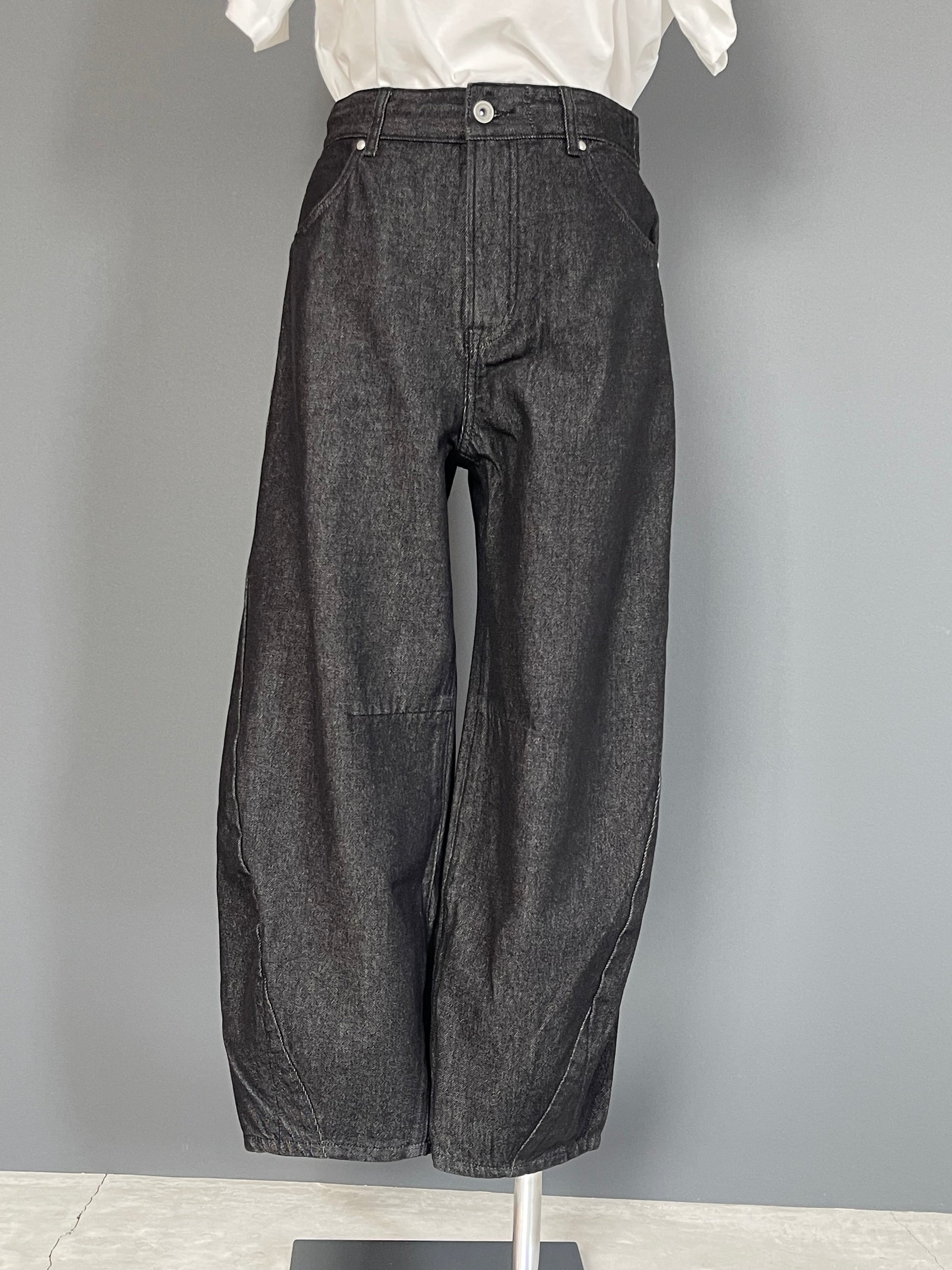 履き心地バツグンなコクーンデニムパンツ。程よく丸みがあり適度なストレート感のシルエットに成っています。トップスの丈によって違った印象を表現出来るので、スタイリングをより楽しめる1枚です。