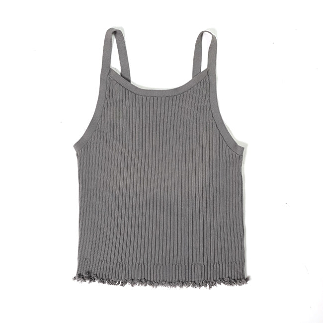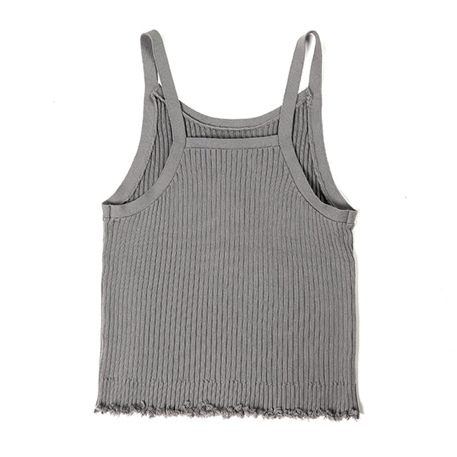レイヤードスタイルが美しく映えるキャミソール。裾のダメージ加工がポイント。細幅のバックスタイルも魅力です。