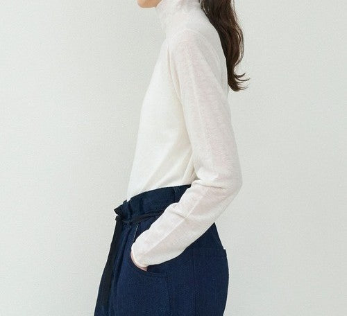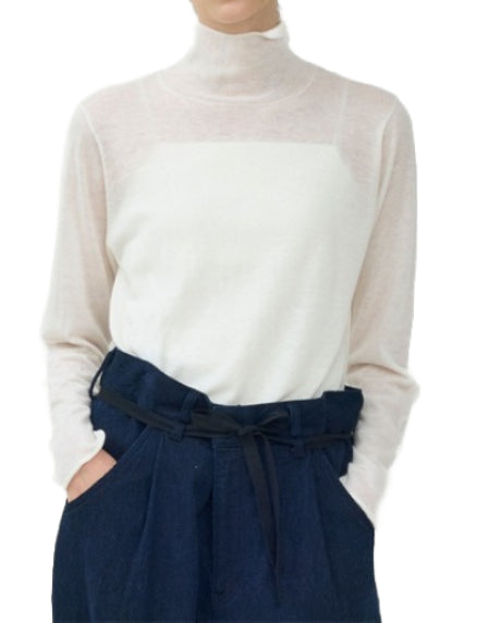 カシミヤ混の糸で編み上げた、柔らかく上品なハイネックニット。