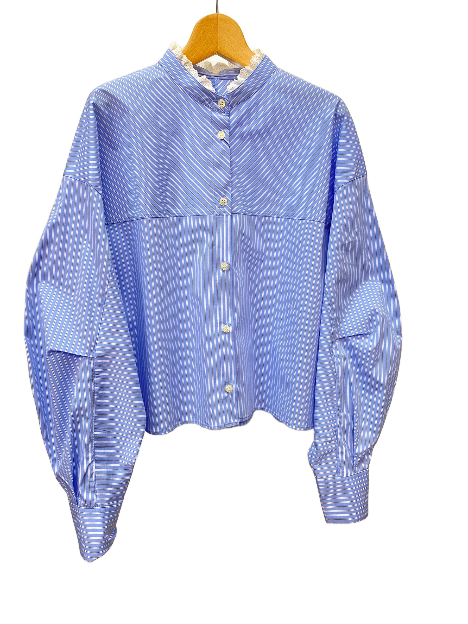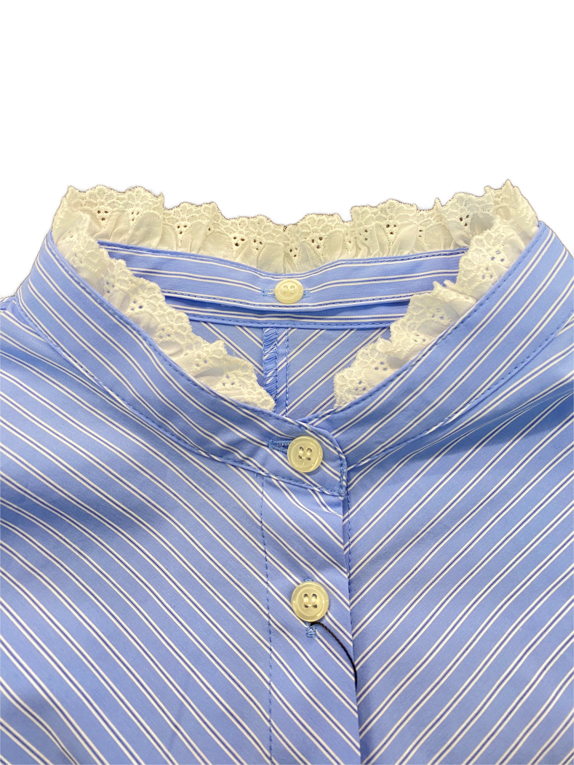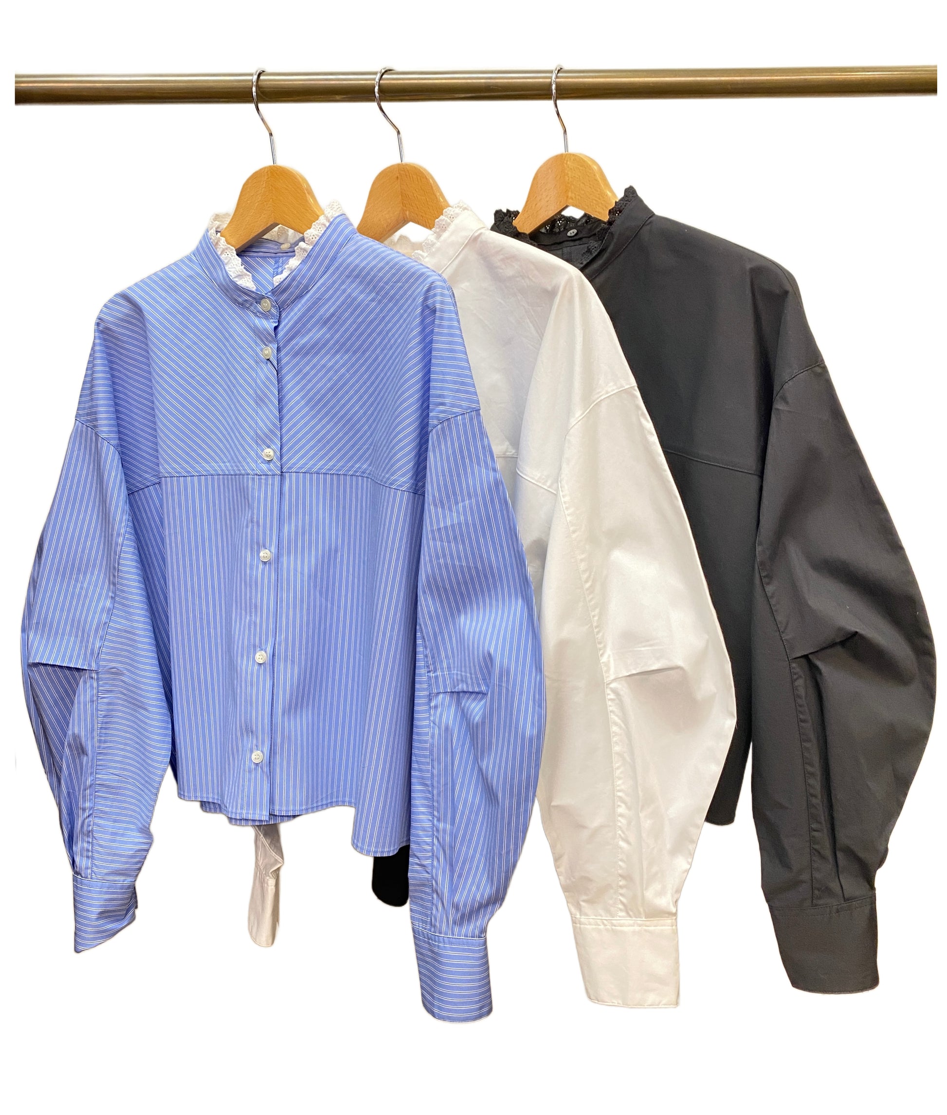Audrey and John Wad(オードリーアンドジョンワッド) 着脱レース襟付きバンドカラーシャツ L6100