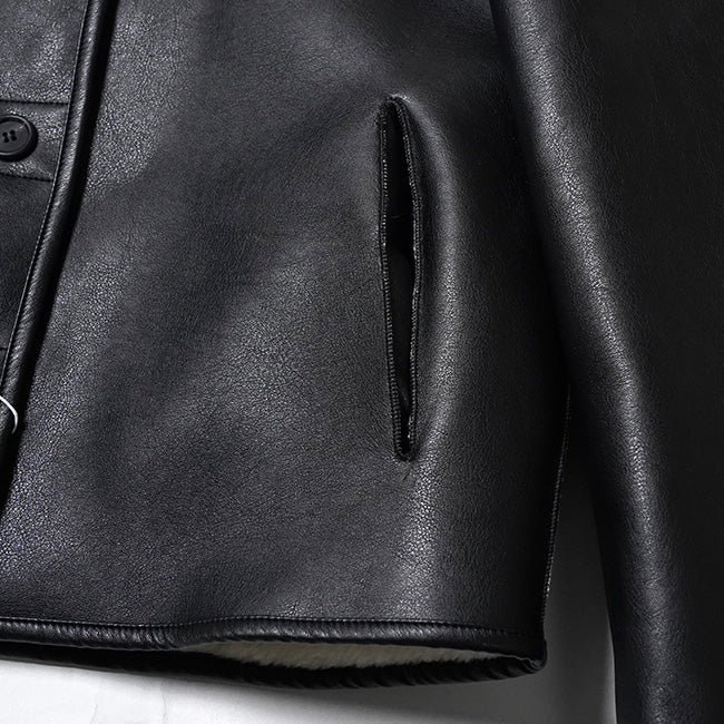 ボア×エコレザーのリバーシブルジャケット。スタイリングに応じて使い分けができ、エコレザーならではの軽さも魅力。少しオーバーサイズでトレンドスタイリングにマッチ。