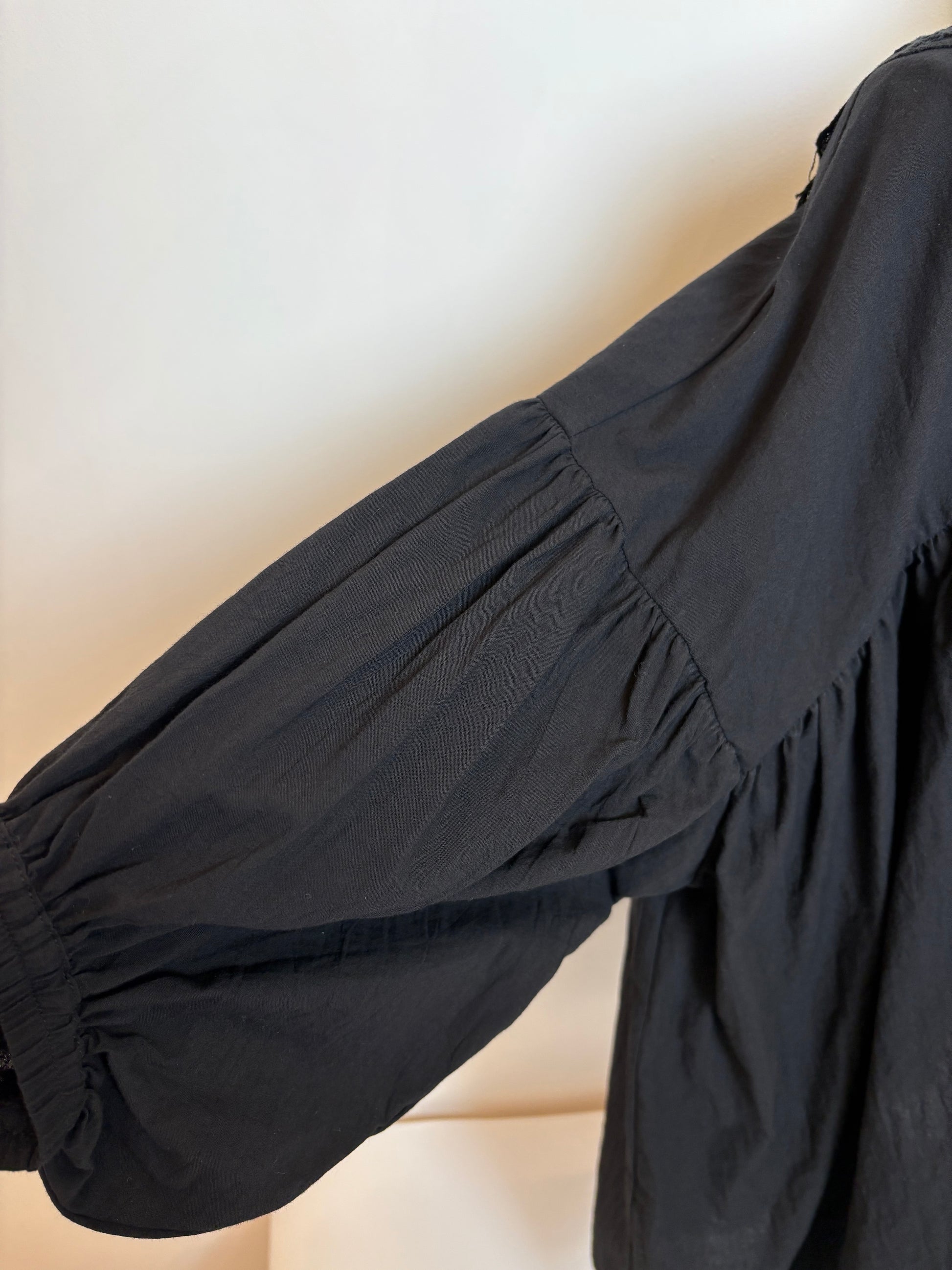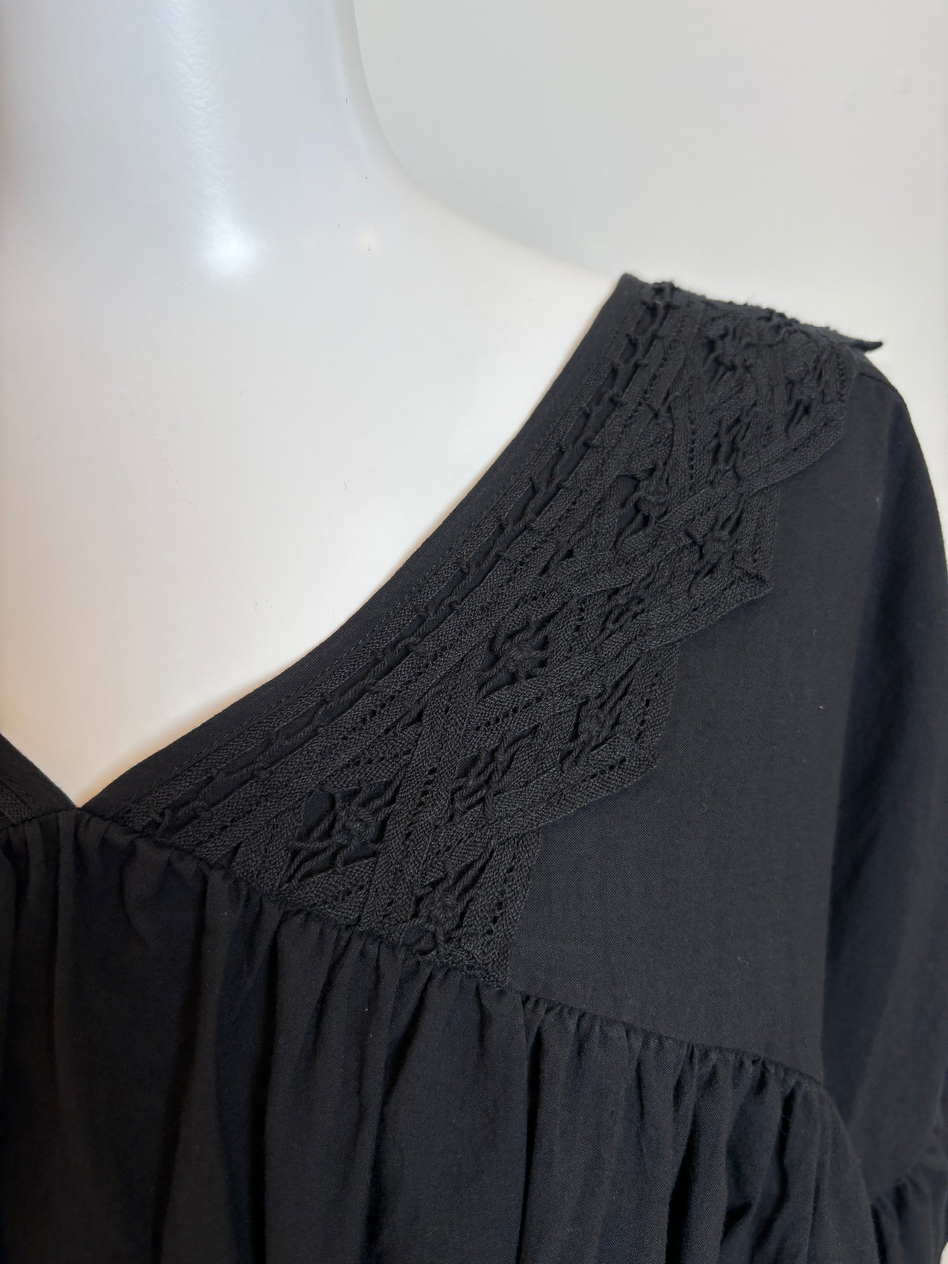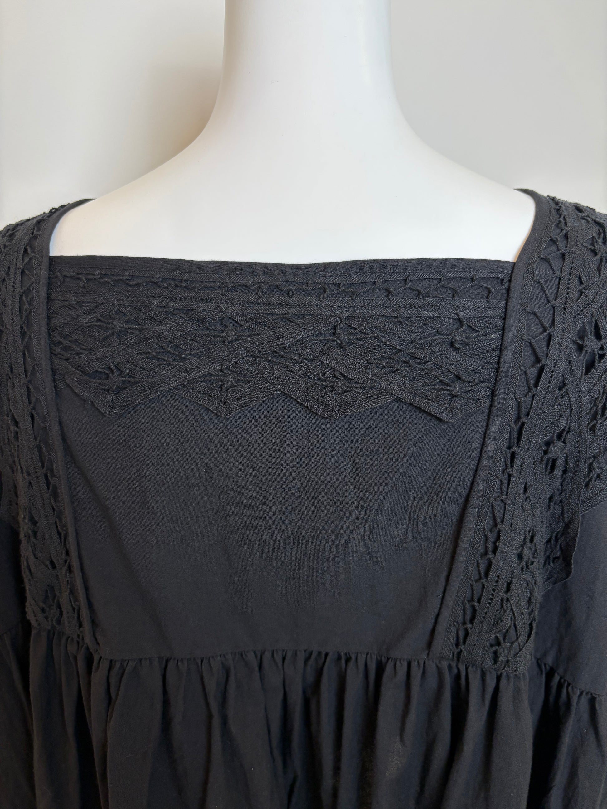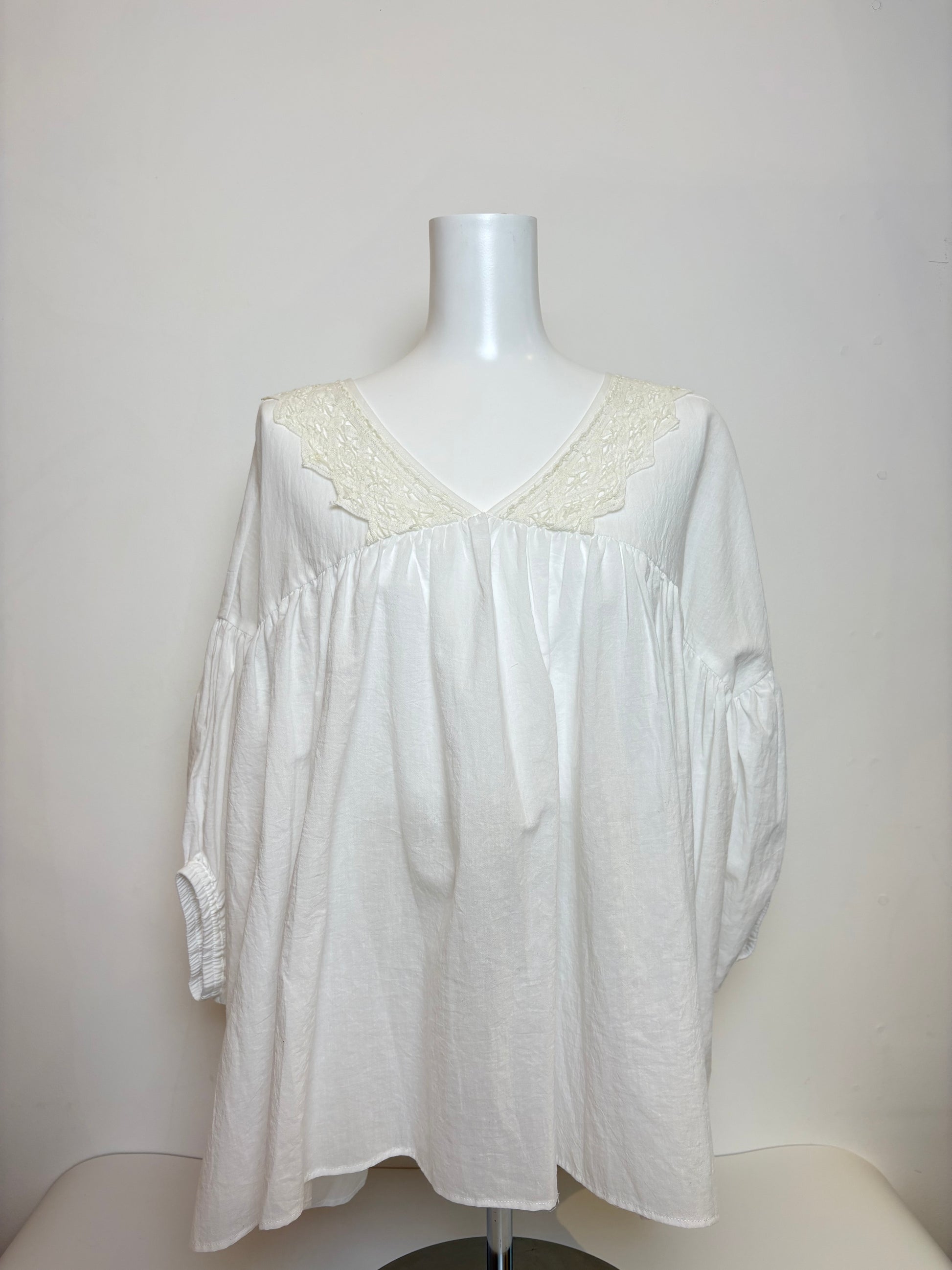 襟元に繊細なレースをあしらった、綿100%の优雅なブラウス。柔らかな風合いで着心地が良く、女性らしいシルエットが魅力。普段使いから華やかな場面まで幅広く活躍します。