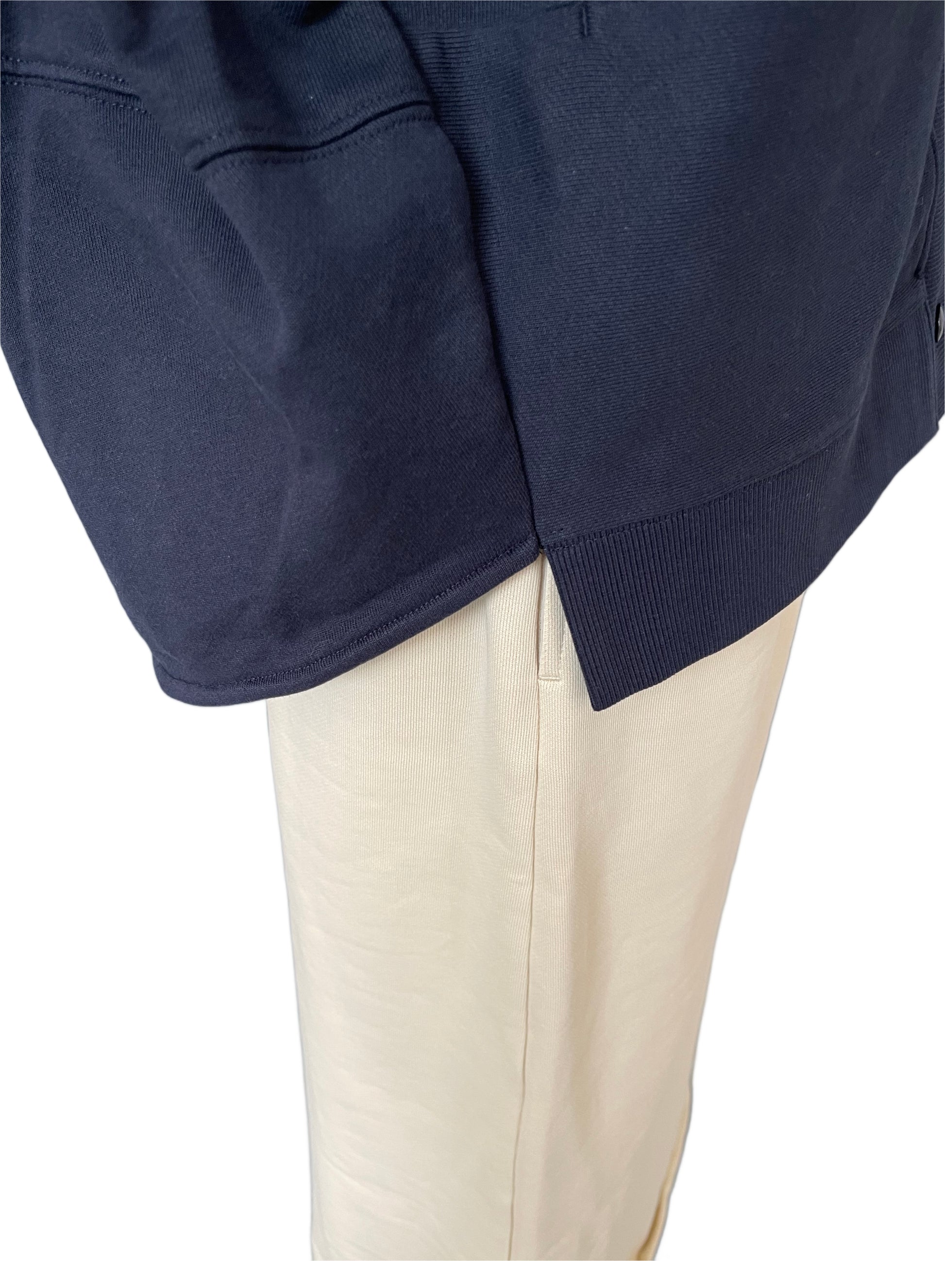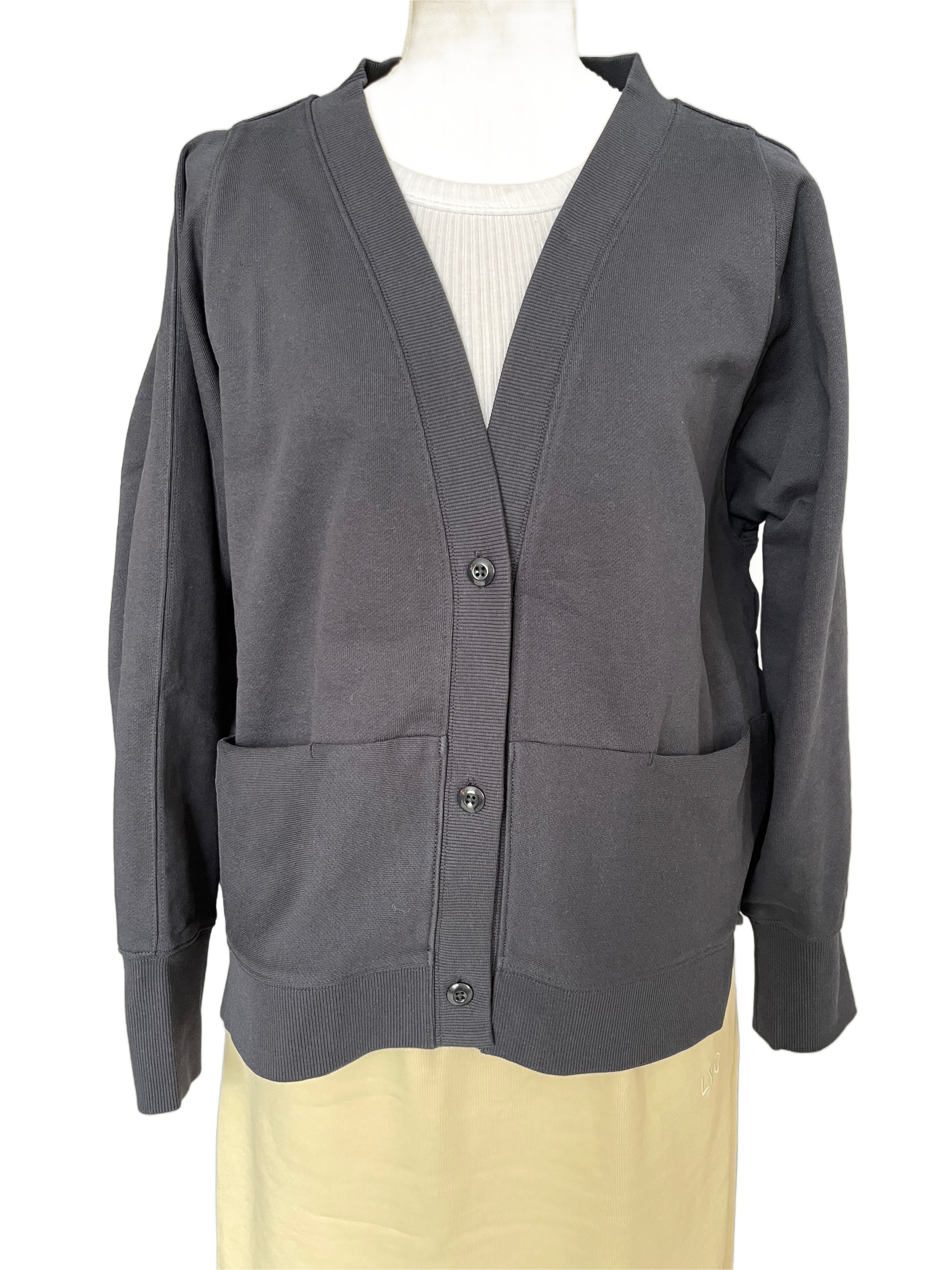 裏毛カーディガン 後ろがヒップ隠れる長さで前は少し短めラウンド型で着用するだけで可愛らしい感じに、切り替えラインにポケット有り、春から初夏まで着用可能。デニム、チノパン、スカート、ワンピースなど、いろんなアイテムに合わせやすいです。