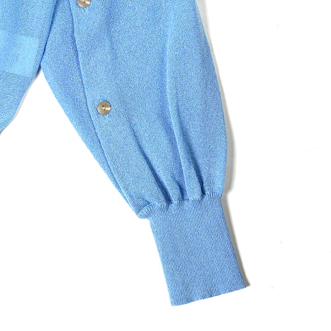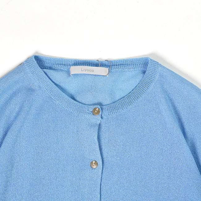 シンプルなカーディガンとしてはもちろん、袖のボタンをはずしてそこから腕を出すとノースリーブの羽織のようにも使えます。室内と屋内で気温差のある時期に重宝するトップスです。