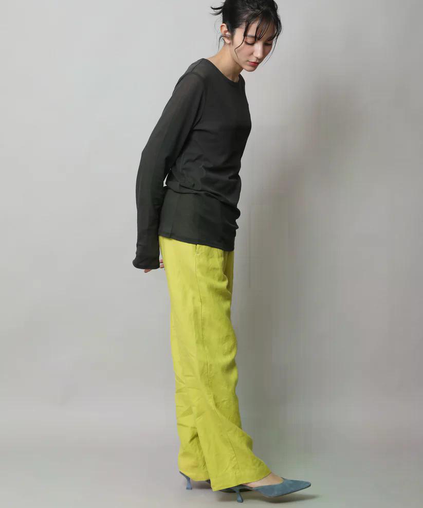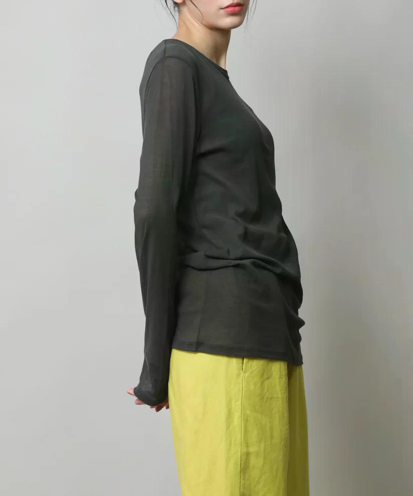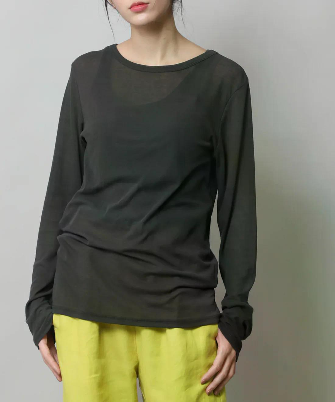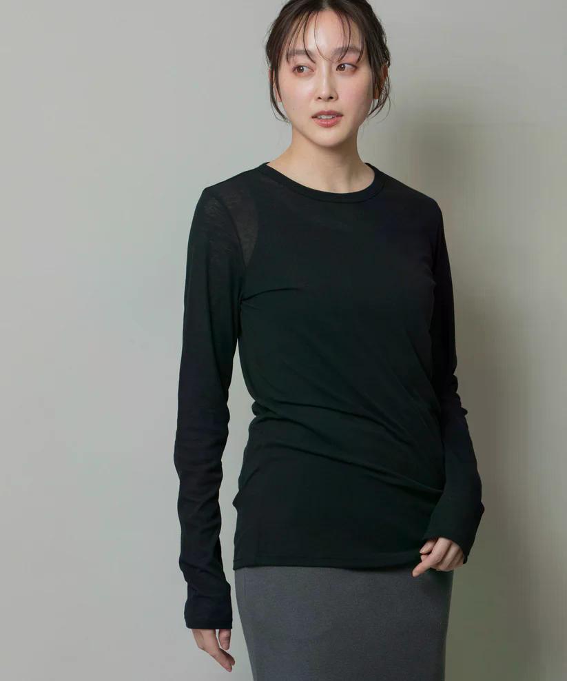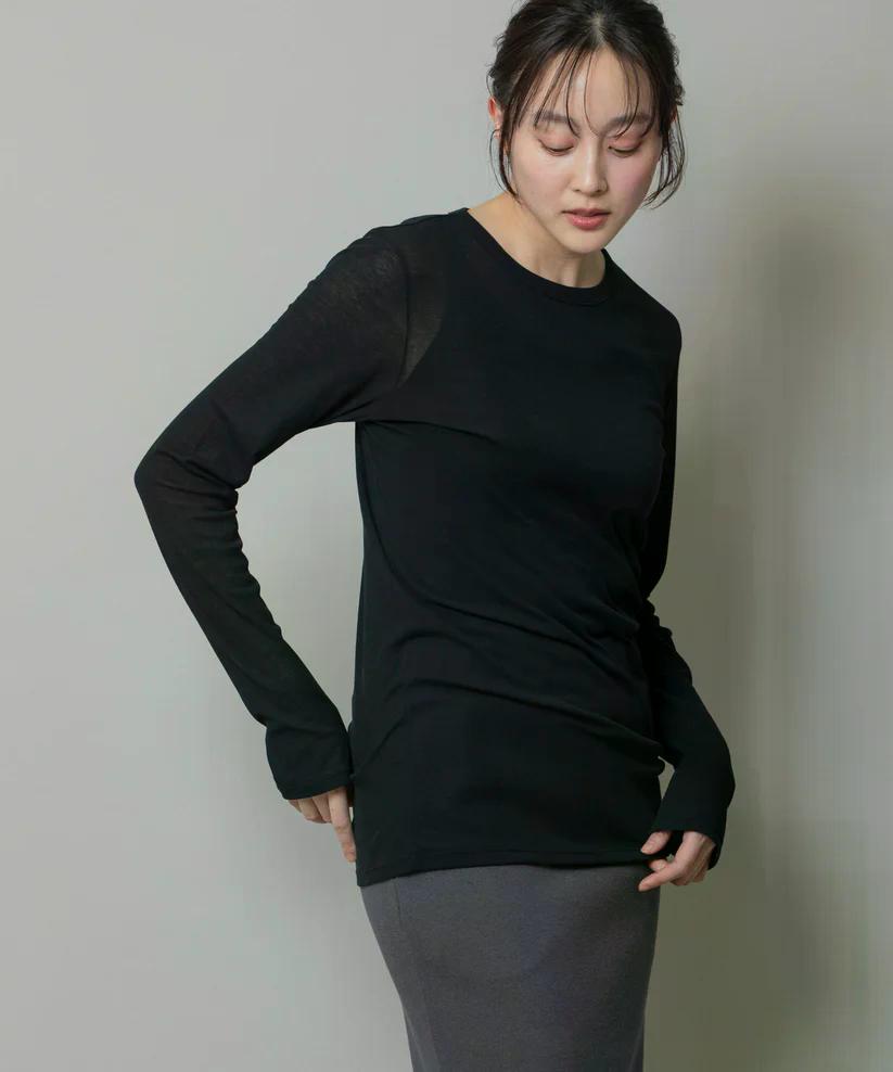 トレンド感のあるシアー素材を使用した、クルーネックインナー。