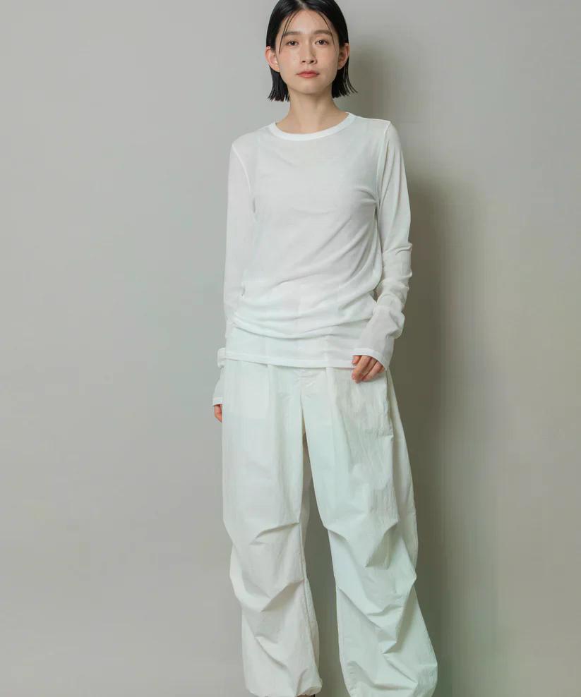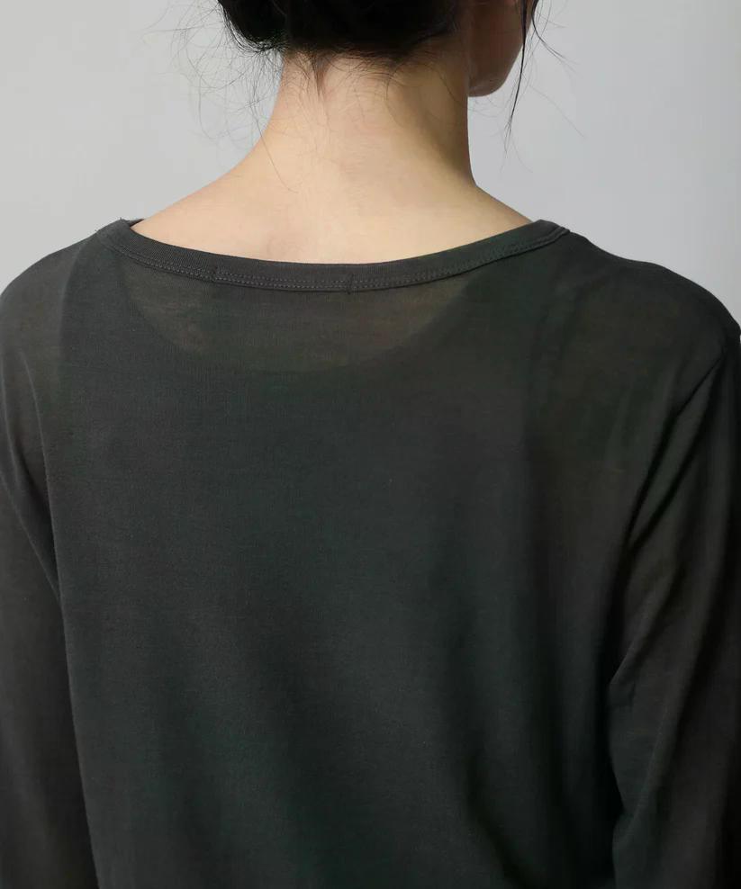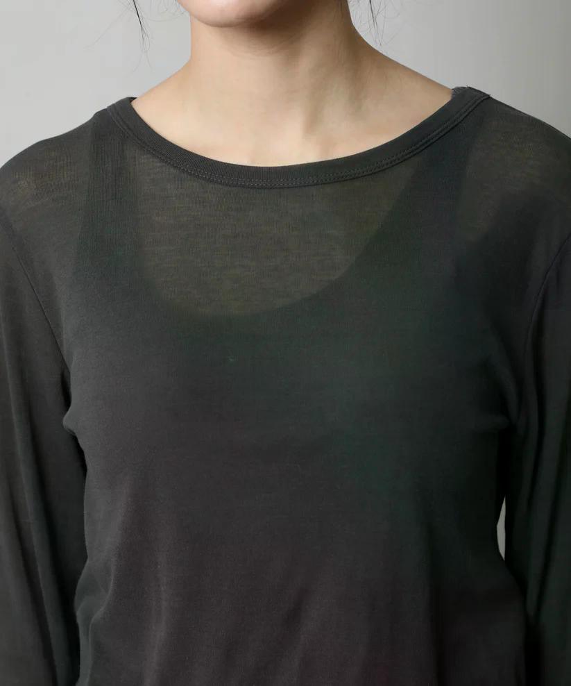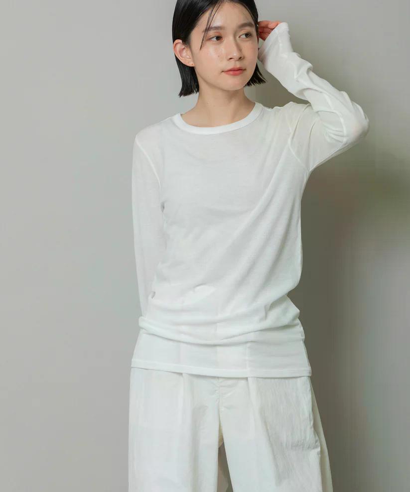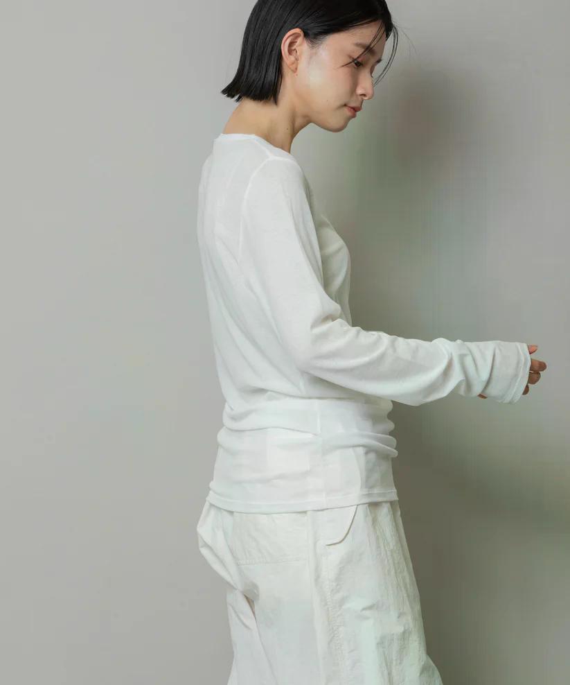 薄手でほのかな透け感があり、ストレッチ性に優れたコットンフライス素材で、肌に直接触れてもストレスのない優しい着心地が魅力です。