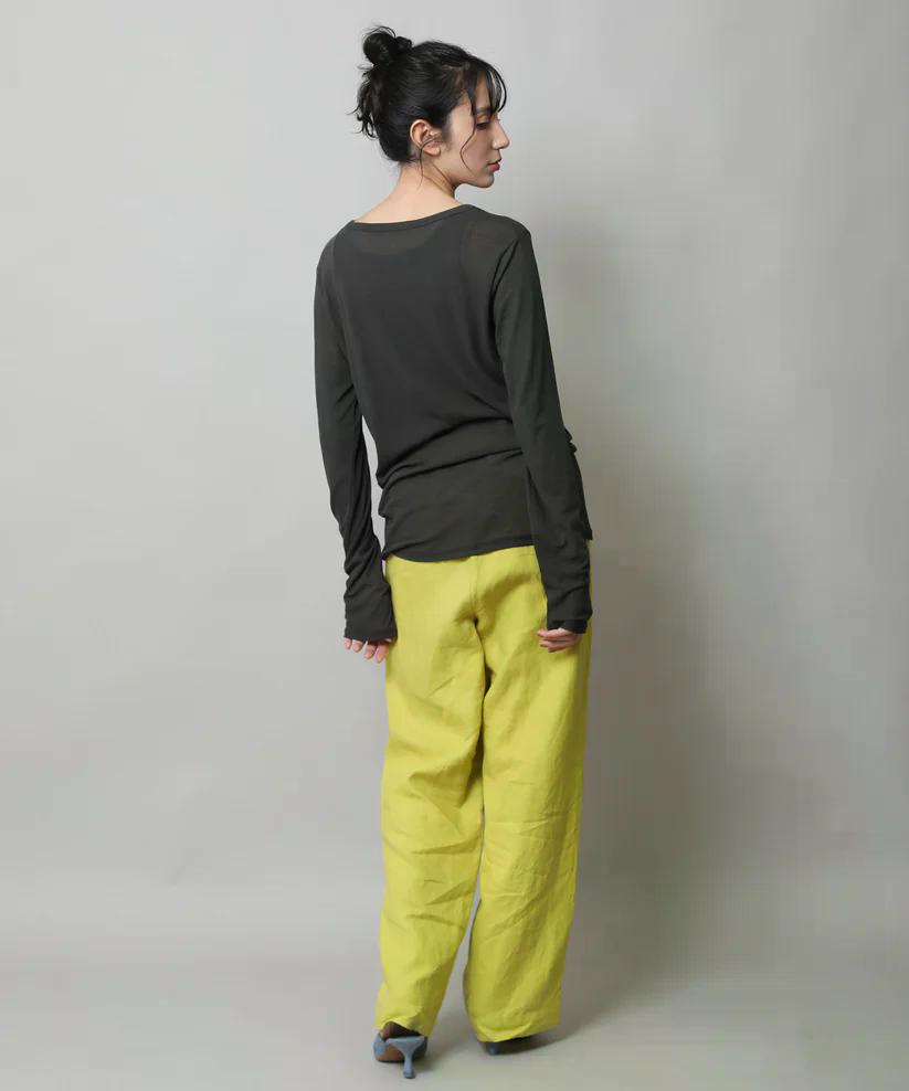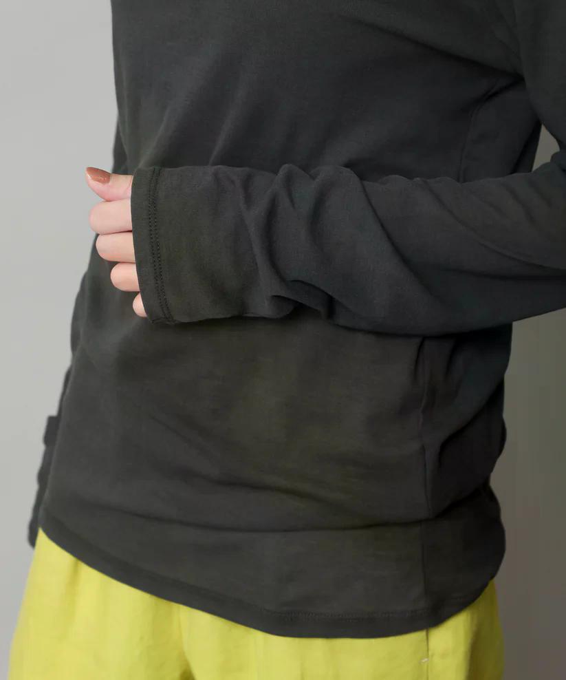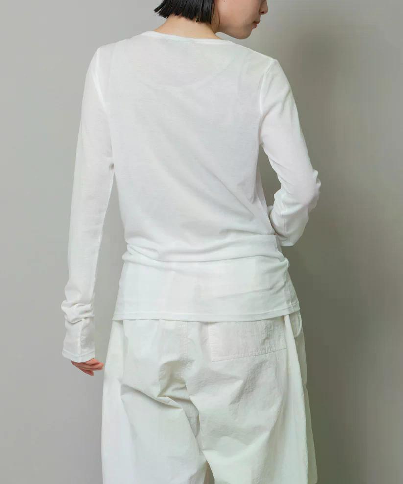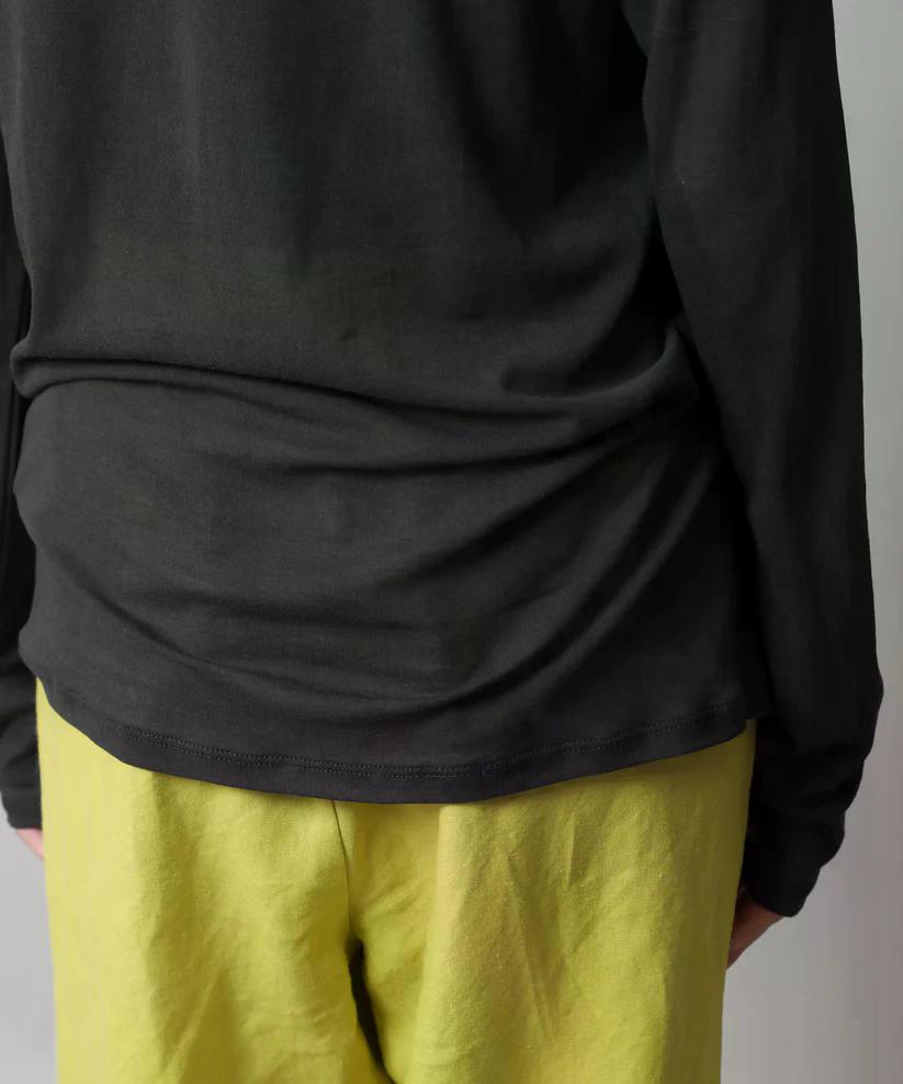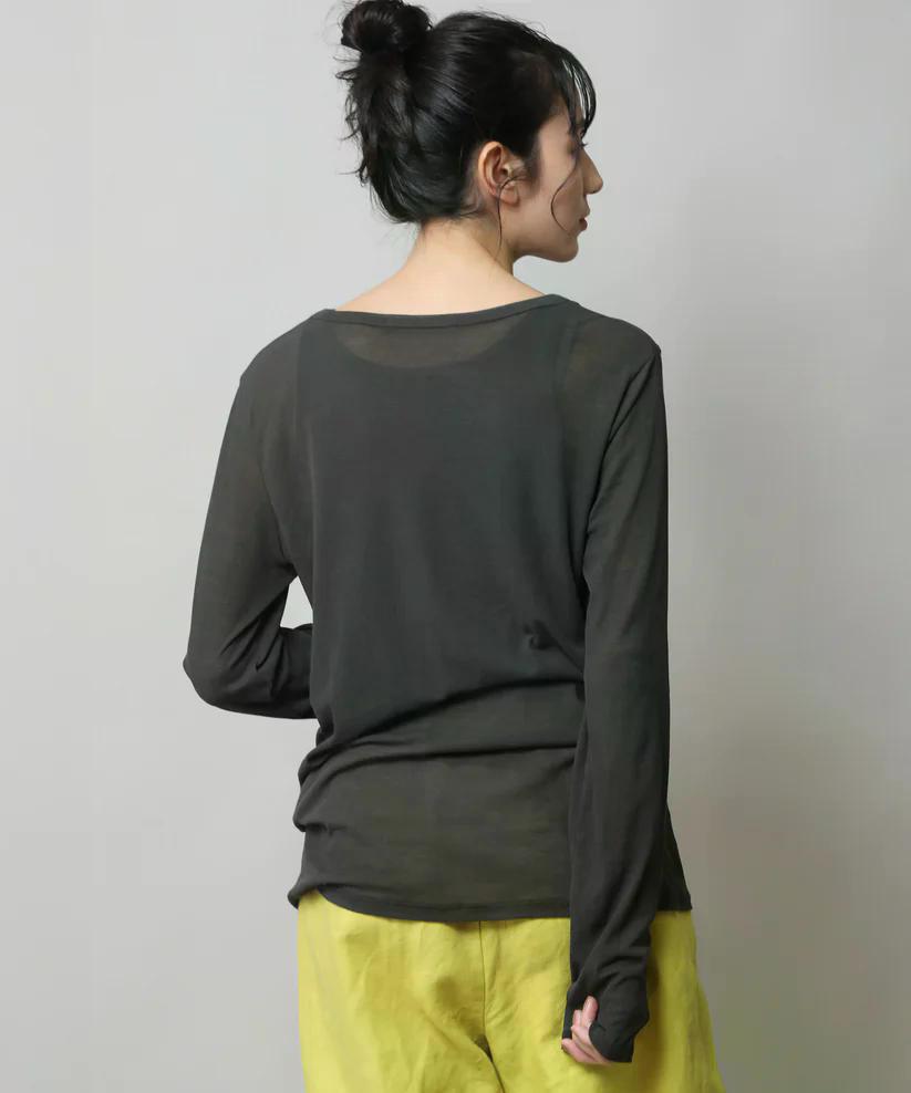 薄手でほのかな透け感があり、ストレッチ性に優れたコットンフライス素材で、肌に直接触れてもストレスのない優しい着心地が魅力です。