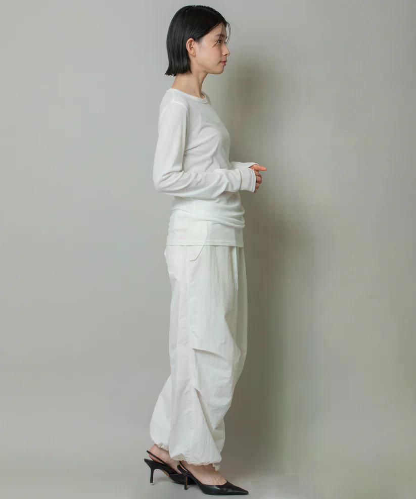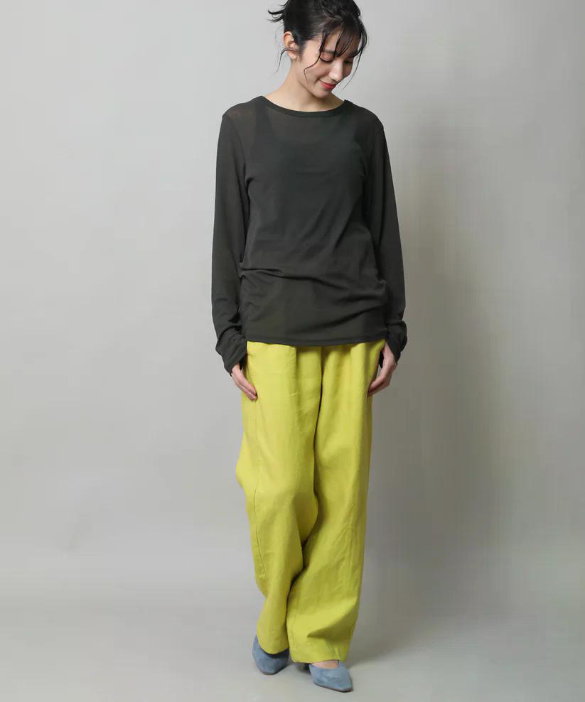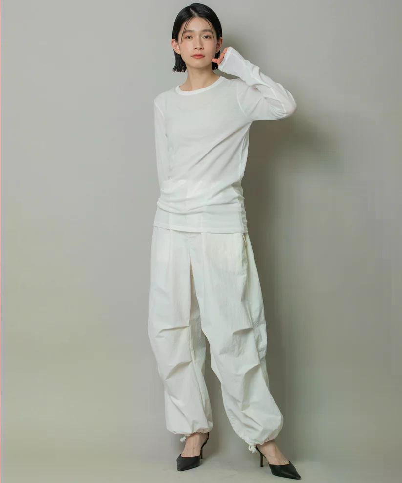 袖口はクシュっとニュアンスの出るデザインで、レイヤード時にチラリと見せるスタイリングにもおすすめ。