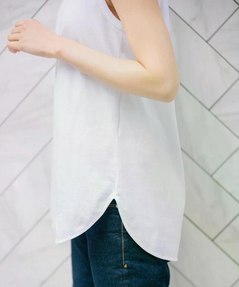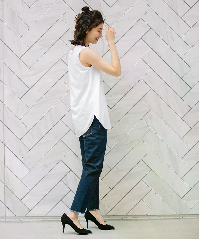裾はゆるやかにラウンドさせ、アウトで着たときもレイヤードが映える今っぽいバランスに。