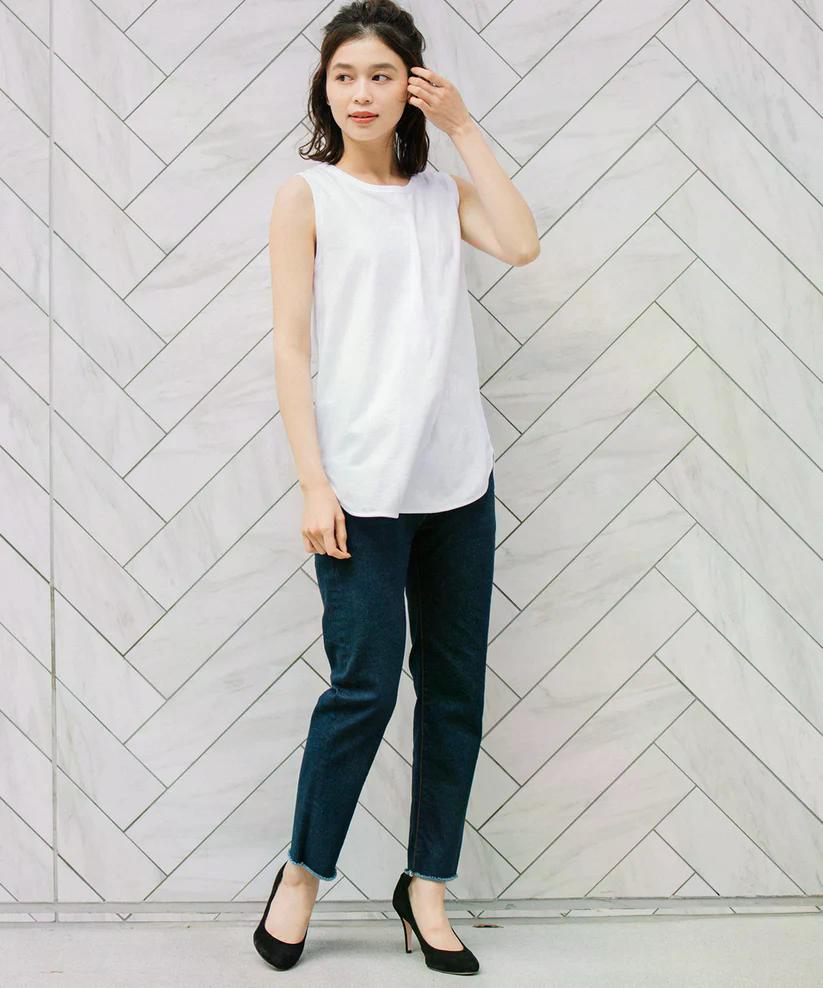 インナー使いはもちろん、透け感の少ない素材なので一枚でも安心して着用できます。