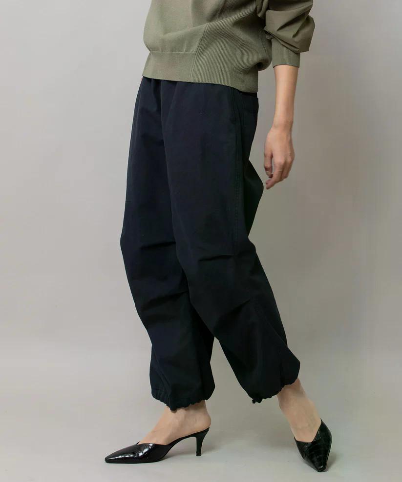さらに裾にもスピンドルを通しているため、きゅっと絞ってメリハリのある着こなしもおすすめです。