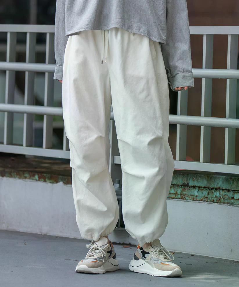 タフなダック素材を使用した、存在感のあるオーバーパンツ。