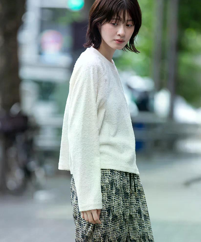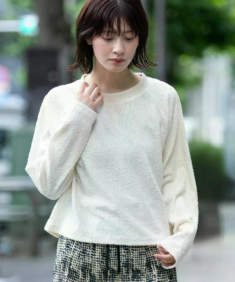 フェミニンで柔らかな雰囲気が魅力の、ナチュラルな毛並み感を持つフリースプルオーバー。