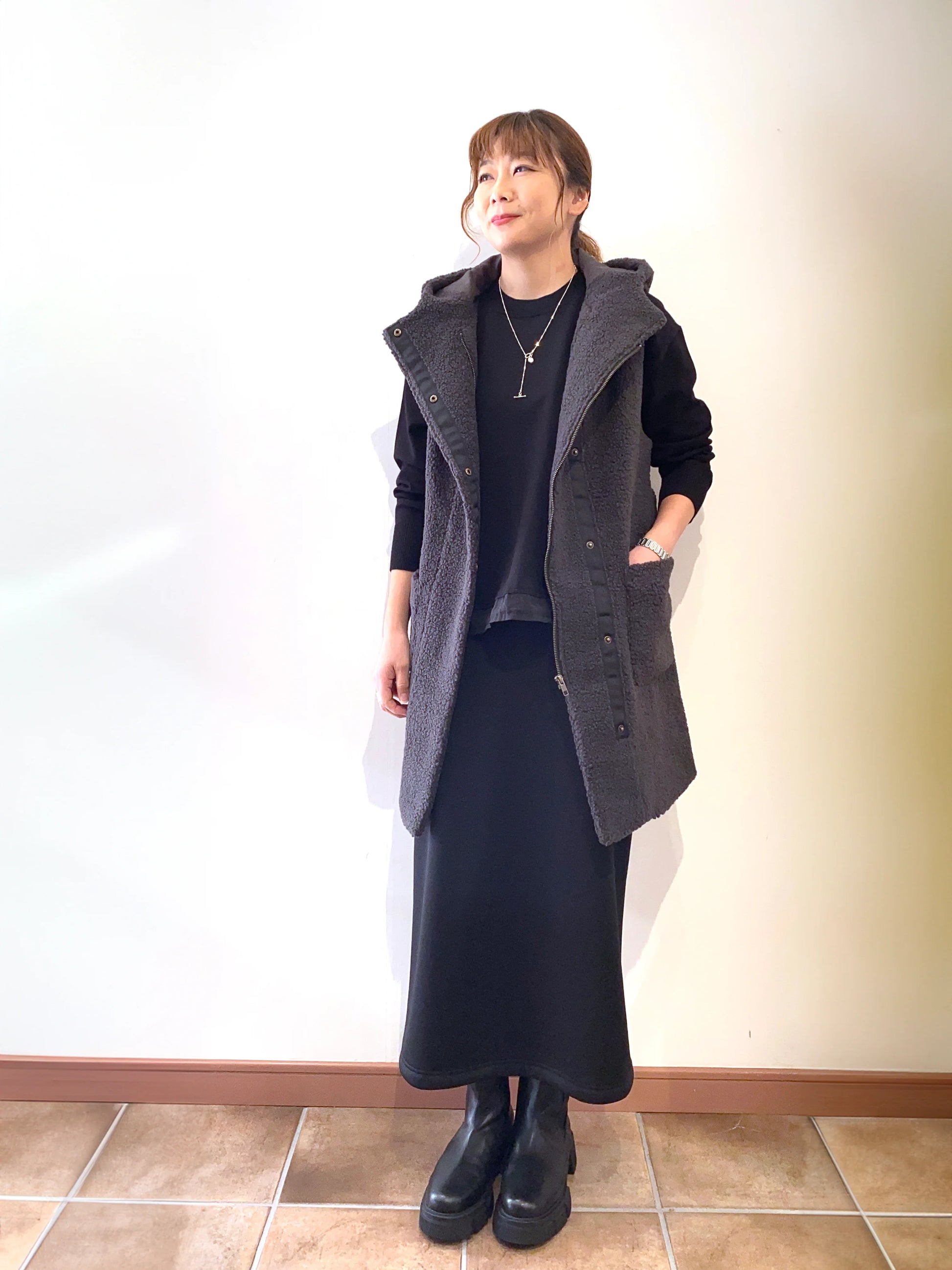 ボアのモコモコ感が可愛いく、1枚重ねるだけで、暖かく防寒対策にも優れています。Tシャツやワンピースに重ねてレイヤードスタイルを楽しめます。体型カバーにもバッチリです。