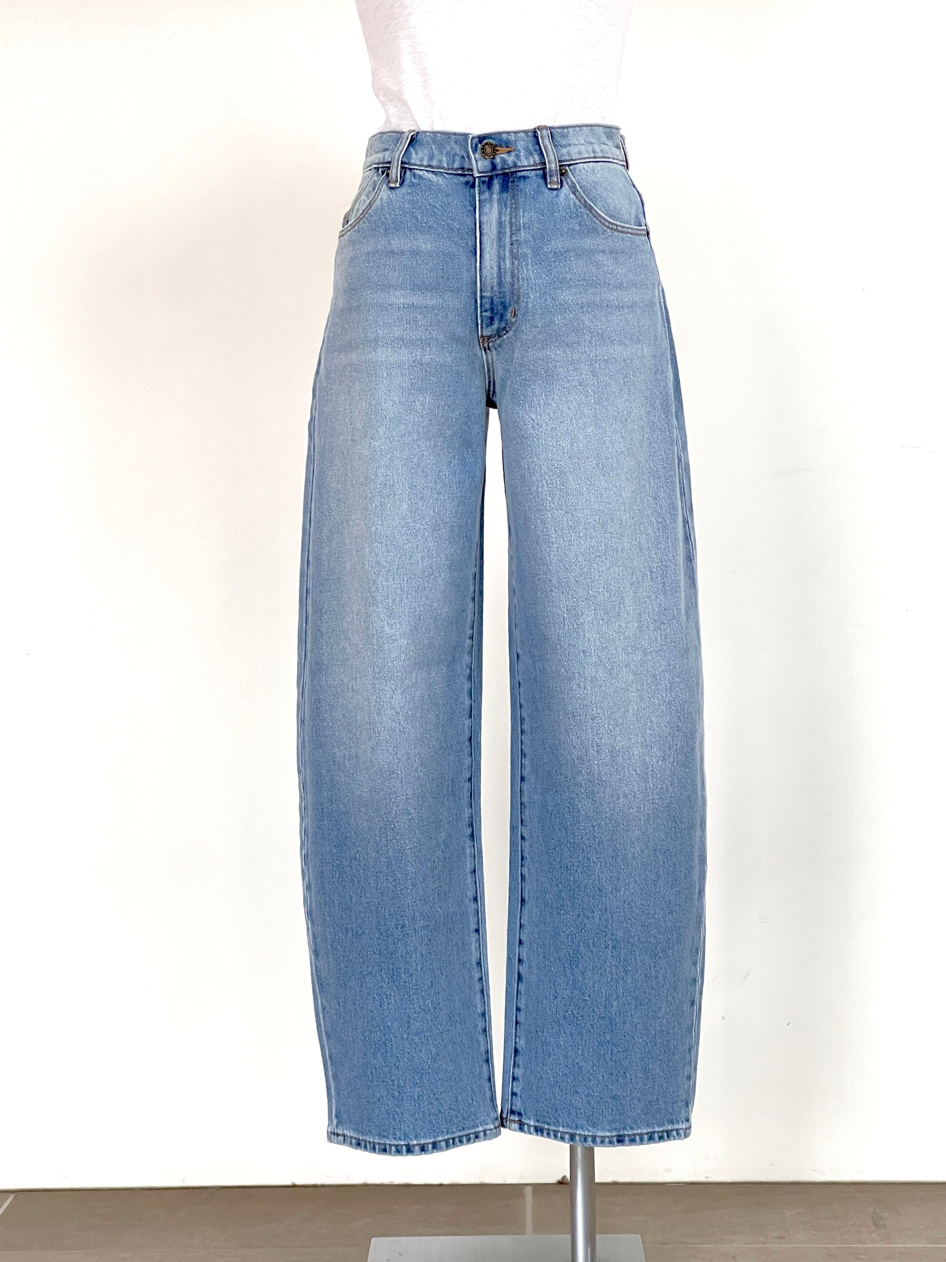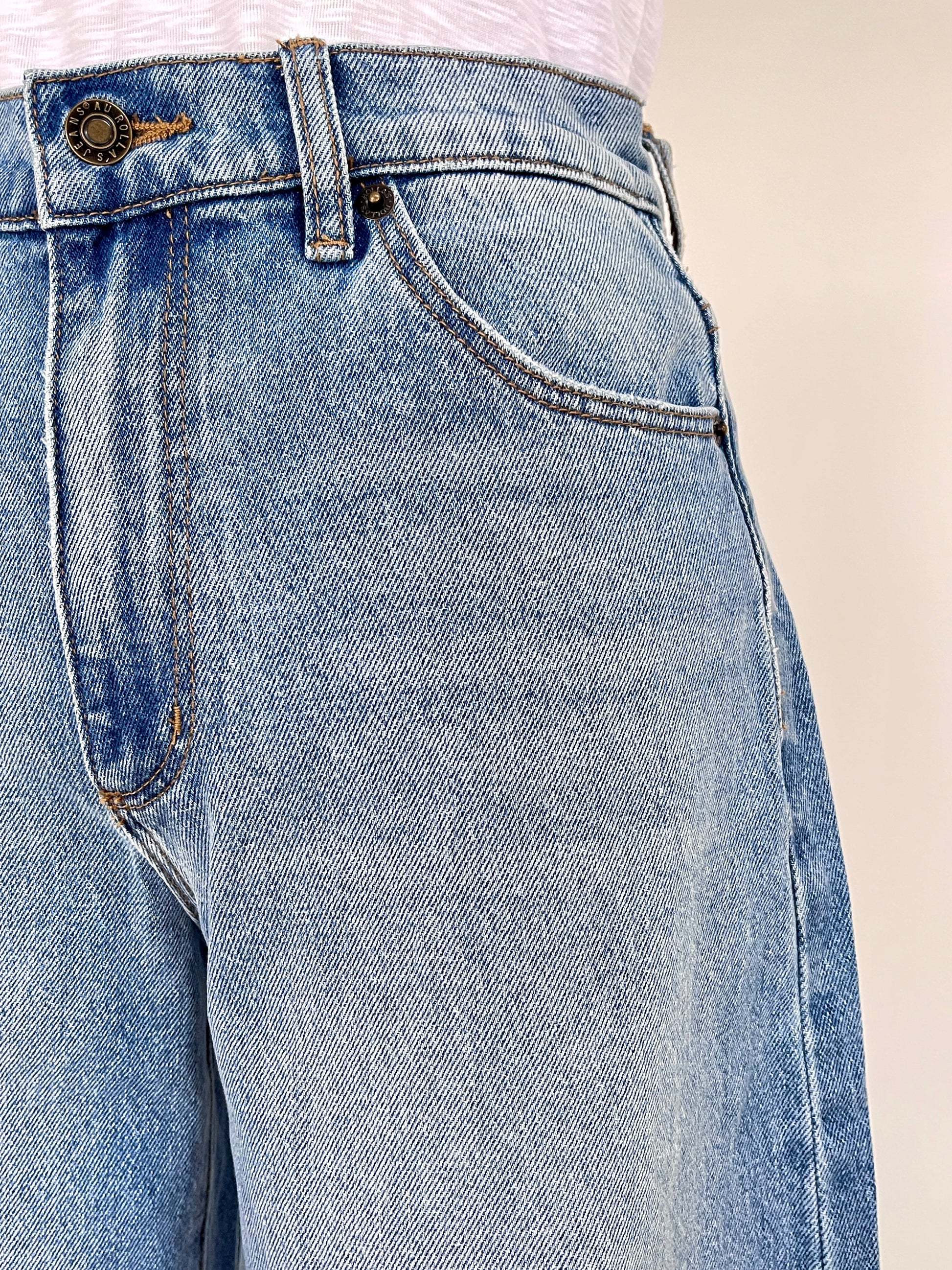 ウエストから腰回りのラインは程よいフィット感があり、裾に向かって細くなるシルエットが特徴的。ラフさを出すならサイズアップしてルーズに履くのもオススメ。