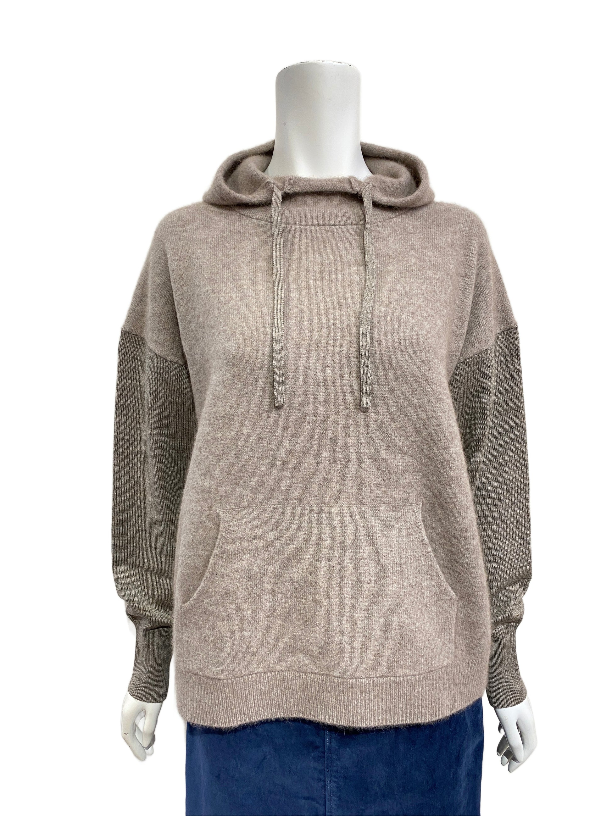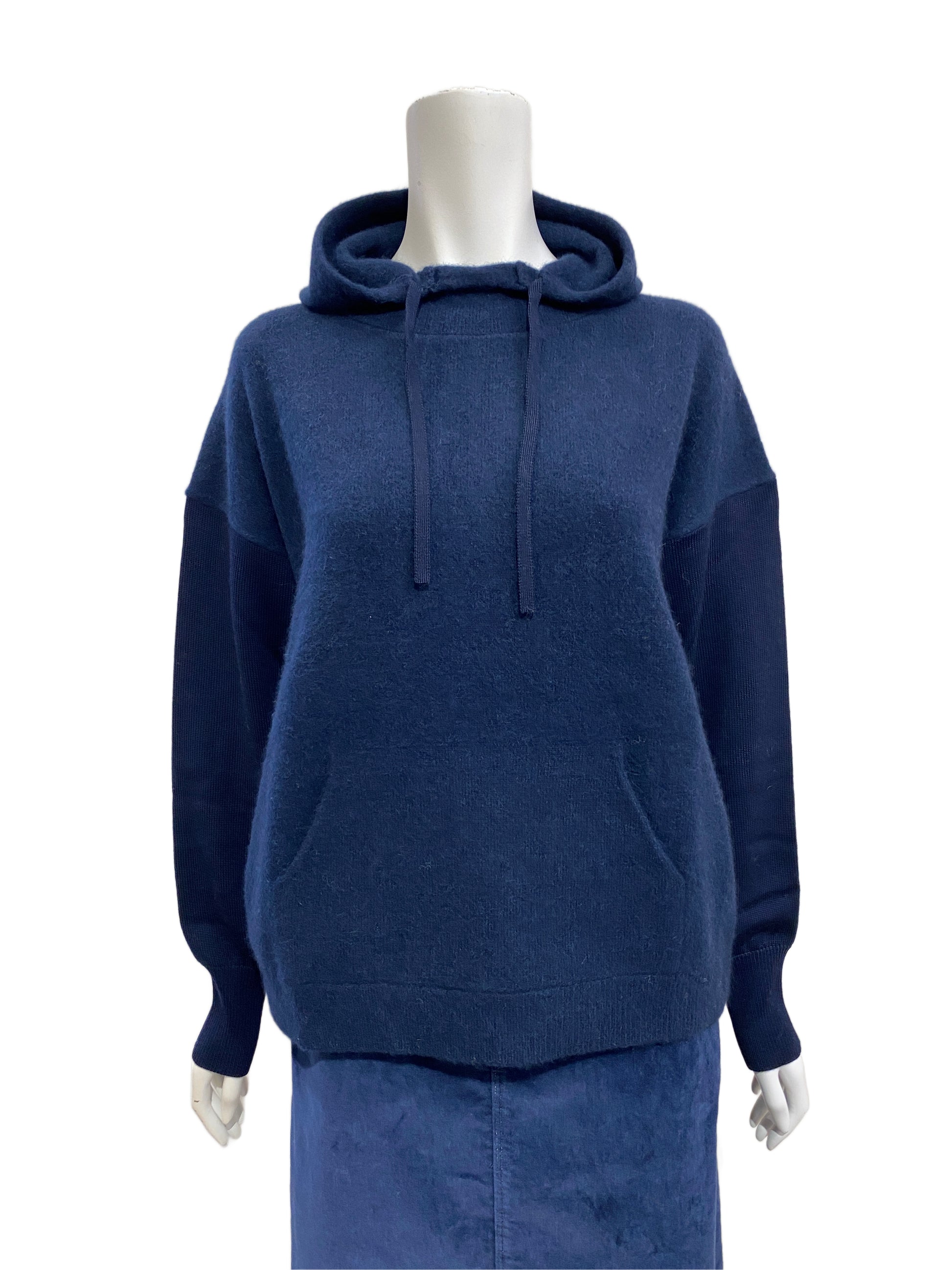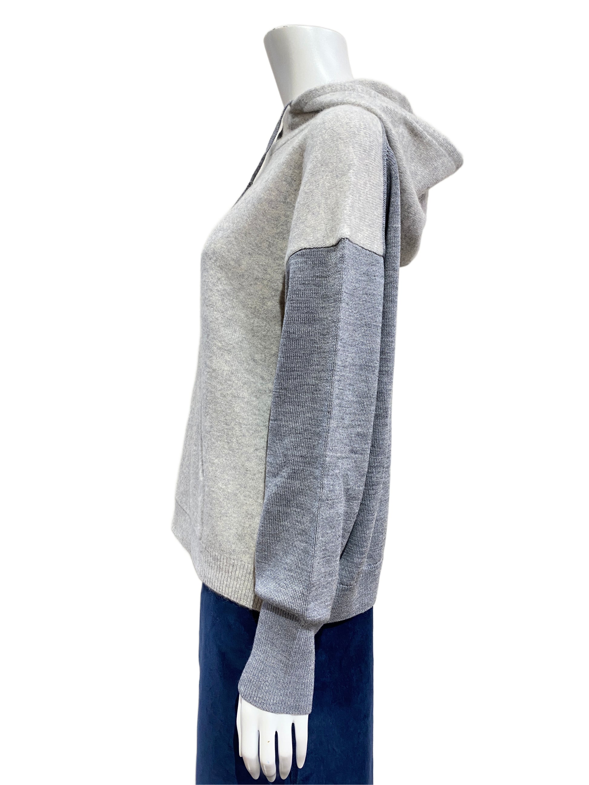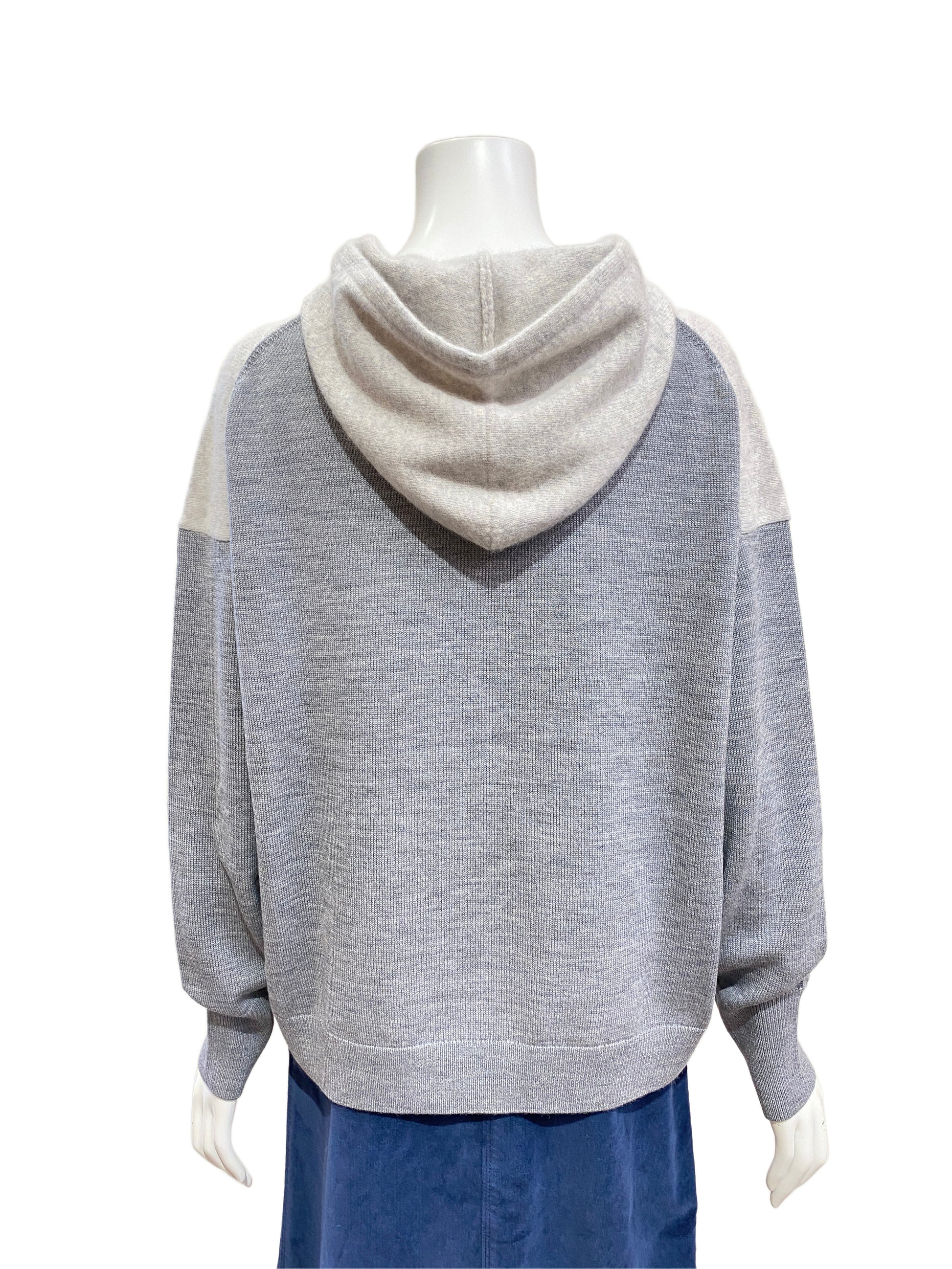 パーカーのカジュアルなデザインと、ニットの上品な素材感が組み合わさり、大人っぽく洗練されたカジュアルスタイルを演出できます。