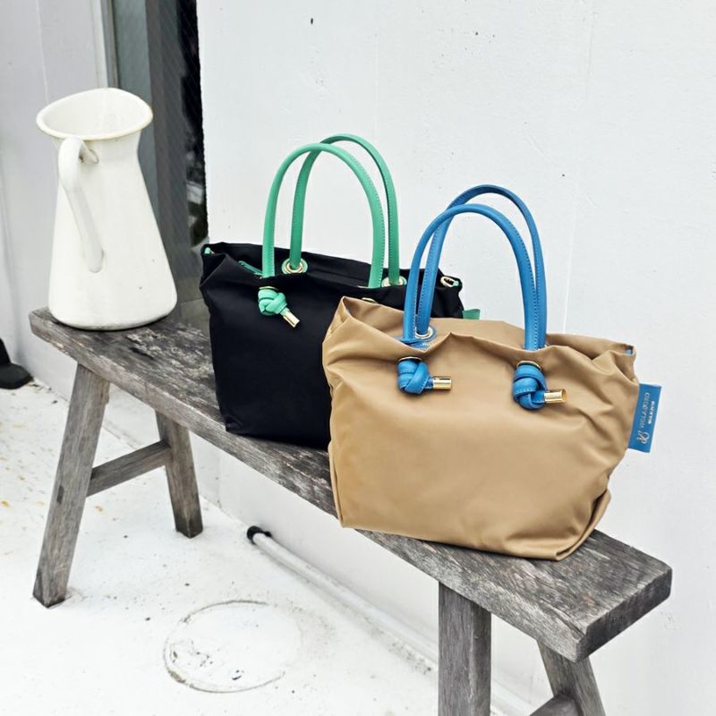 シンプルなデザインのボディにノットハンドルがアクセントになったトートバッグのSサイズ。